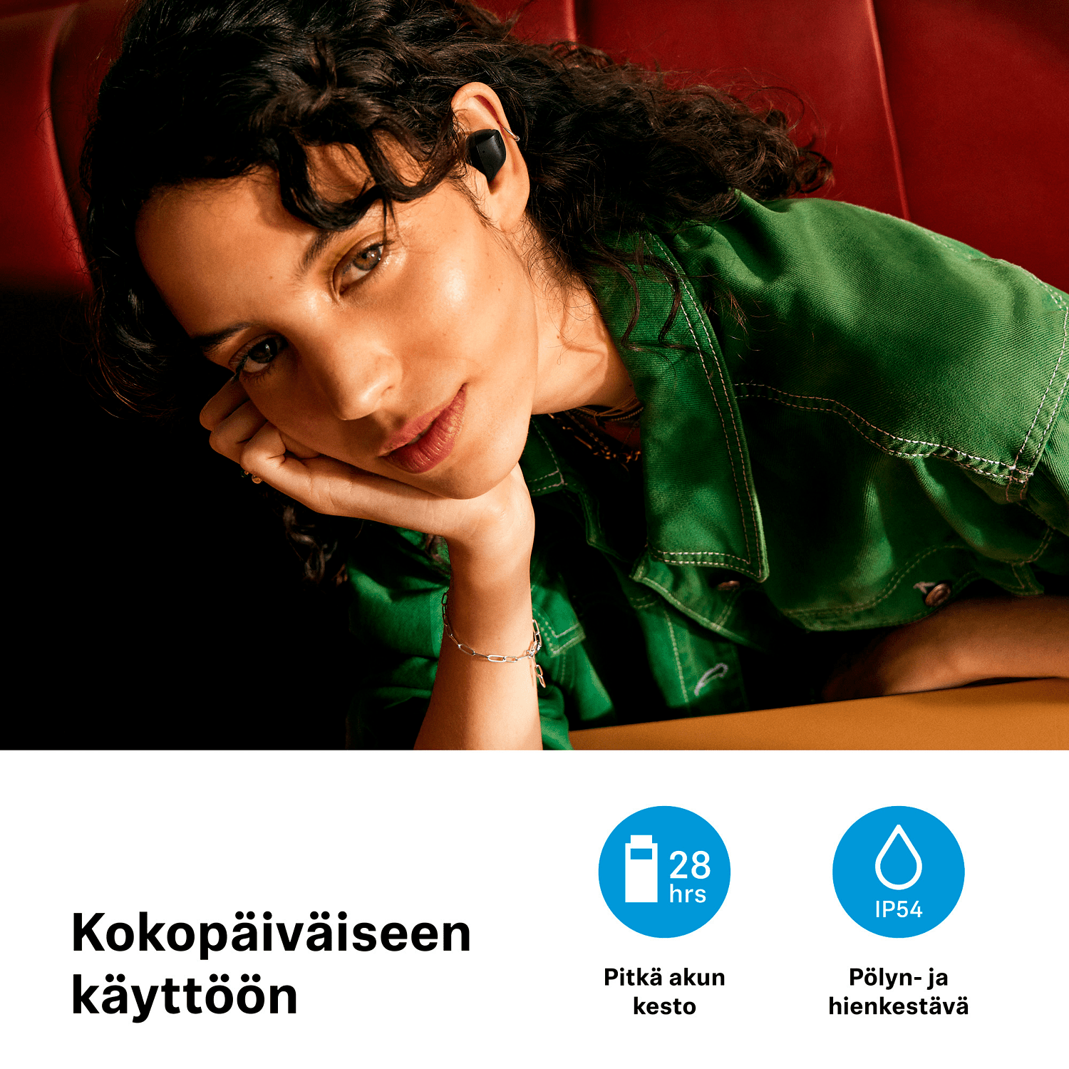 Laajaan korvansisäisen ergonomian tutkimukseen pohjautuva, sulavalinjainen malli ja tukevasti istuvat silikoniset korvanapit ovat poikkeuksellisen mukavat käyttää pitkäänkin. Kotelossa kuulokkeisiin voi ladata jopa 28 tuntia toistoaikaa, jotta pitkäkin kuuntelunautintosi on häiriötön.