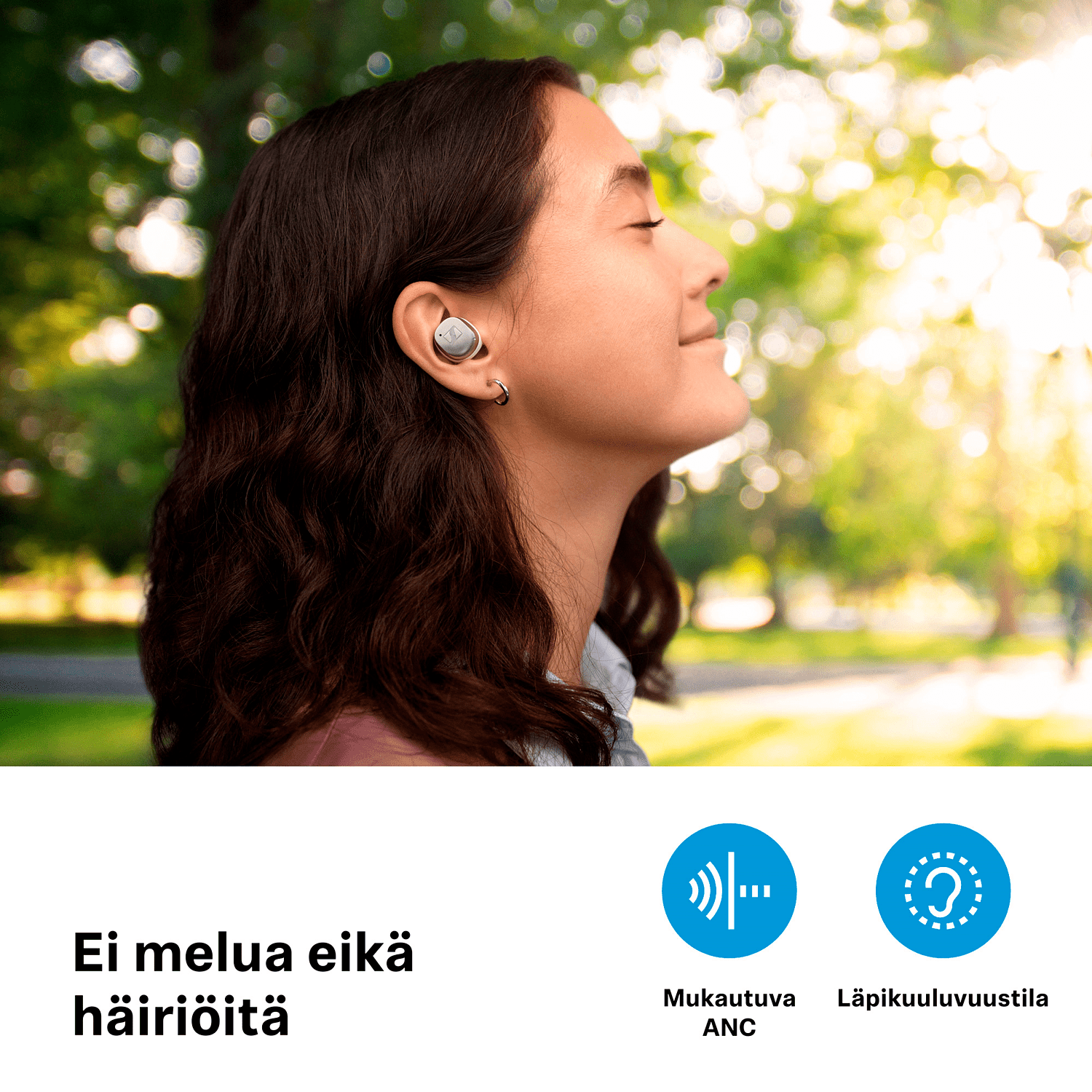 Olet tietoinen ympäristön äänistä ilman korvanappien poistamista, mikrofonien ansiosta vuorovaikutus ympäristön kanssa on vaivatonta.