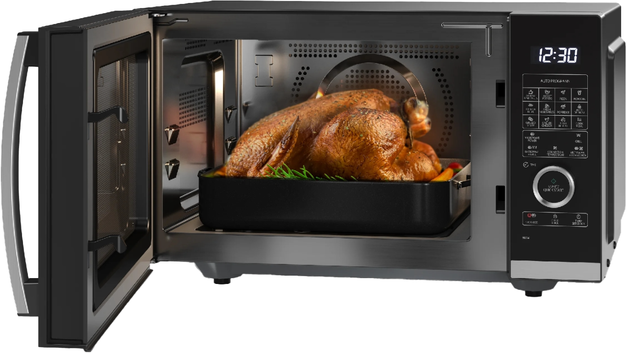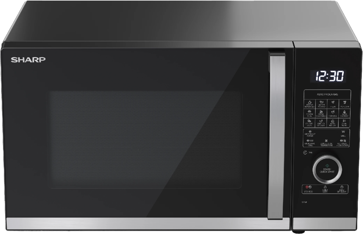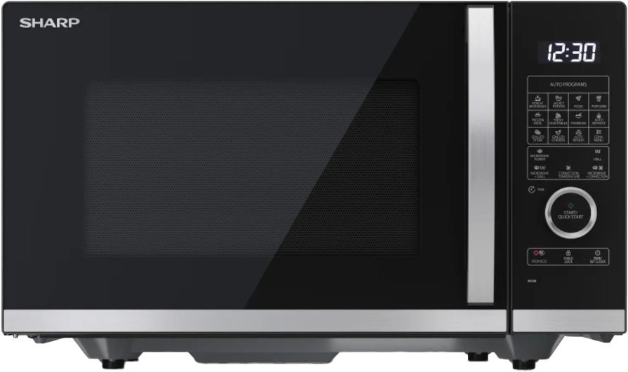 Sharp YC-QC254AE-B yhdistelmäuuni on tilava, tehokas ja monipuolinen, mikä tekee siitä täydellisen päivittäiseen käyttöön. Oven kahva ja valintapyörä ajan valitsemiseen lisäävät käyttömukavuutta.