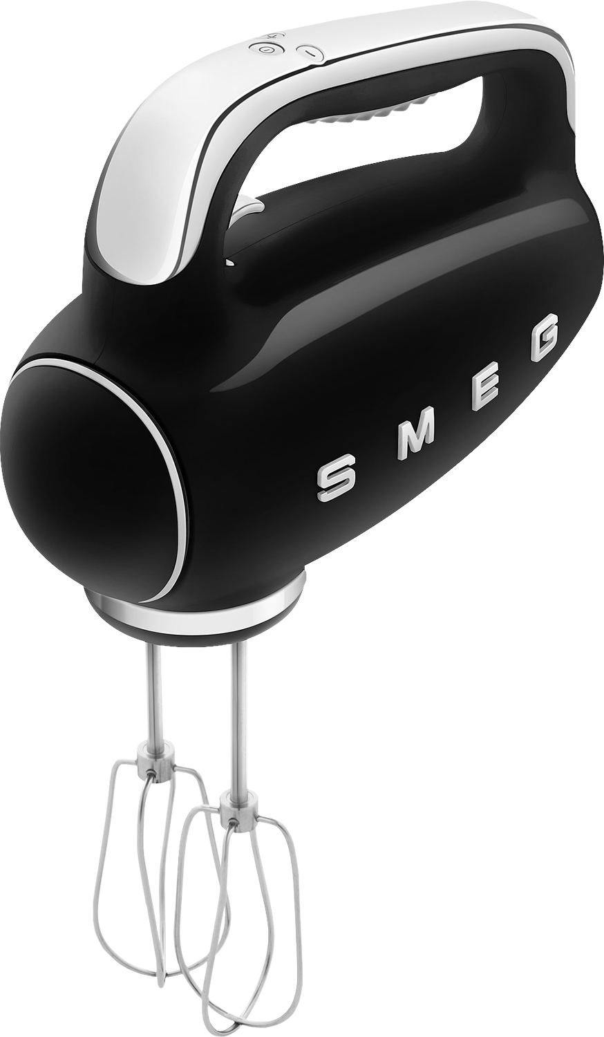 Taustavalaistu LED-näyttö näyttää sekä nopeuden että käyttöajan. Vatkaimet pysyvät tallessa tyylikkäässä ja kätevässä, kankaisessa Smeg-pussissa.
