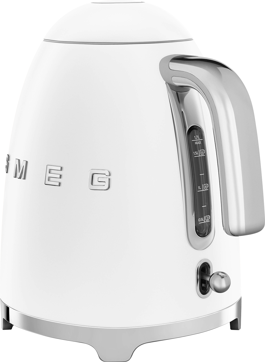 Smegin vedenkeitin on valmistettu ruostumattomasta teräksestä ja siinä keität kerrallaan 1,7 litraa vettä. Tyylikkään ulkonäön viimeistelee kromattu kahva. Keitin on varustettu automaattisella virrankatkaisulla veden kiehuessa tai kun keitin on tyhjä.