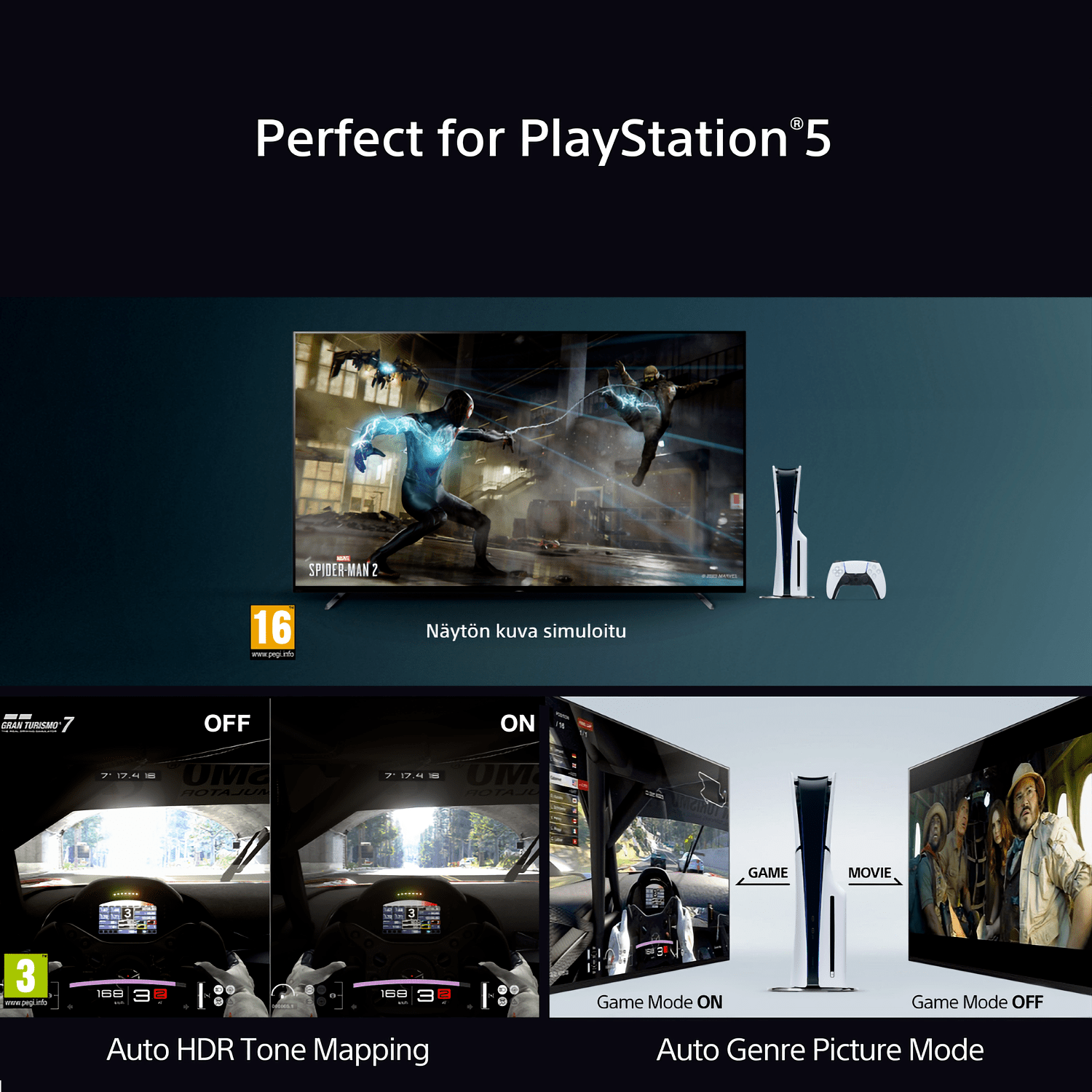 (1) Tämä toiminto toimii yhteensopivissa malleissa (BRAVIA Theatre Quad / BRAVIA Theatre Bar 9 / BRAVIA Theatre Bar 8 / HT-A9 / HT-A7000 / HT-A5000 / HT-A3000). Tuotteen saatavuus riippuu alueista ja maista. HT-A7000 / HT-A5000 / HT-A3000 tarvitsee lisävarusteena saatavia takakaiuttimia tämän ominaisuuden käyttämiseksi. Valinnaisia takakaiuttimia ei välttämättä ole saatavilla kaikissa maissa ja kaikilla alueilla. (2) Tämä ominaisuus toimii yhteensopivien mallien kanssa (BRAVIA Theatre Quad / BRAVIA Theatre Bar 9 / BRAVIA Theatre Bar 8 / HT-A9 / HT-A7000 / HT-A5000 / HT-A3000). Tuotteen saatavuus riippuu alueista ja maista. (3) Valmistettu 80-prosenttisesti kierrätysmuovista. (4) Käyttäjän on hyväksyttävä Googlen käyttöehdot ( http://www.google.com/policies/terms/ ), Play-käyttöehdot ( https://play.google.com/intl/en-US_us/about/play-terms/index.html ) ja tietosuojakäytäntö ( http://www.google.com/policies/privacy/ ) voidakseen käyttää televisiota. Käyttäjän on muodostettava yhteys Google-tiliin, jotta hän voi käyttää tiettyjä mainostettuja ominaisuuksia, mukaan lukien ääni linkitettyjen sovellusten aktivoimiseksi, ja asentaa tiettyjä sovelluksia ja käyttöohjelmia asennuksen aikana. TV:n käyttö ilman Google-tiliä mahdollistaa vain TV:n perusominaisuudet ja tietyt sovellukset. Langaton yhteys edellyttää 802.11-kotiverkkoa (802.11n suositellaan). Tämän tuotteen verkkopalveluihin, sisältöön, käyttöjärjestelmään ja ohjelmistoon voidaan soveltaa erillisiä tai kolmannen osapuolen ehtoja ja edellytyksiä, ja niitä voidaan muuttaa, keskeyttää tai lopettaa milloin tahansa, ja ne voivat edellyttää maksuja, rekisteröintiä ja luottokorttitietoja. Sovellusten on oltava yhteensopivia television kanssa. Sovellusten saatavuus vaihtelee alueittain ja laitteittain. (5) Hands Free -ominaisuuden saatavuus riippuu kielestä ja saattaa vaatia ohjelmistopäivityksen. Katso lisätietoja Sonyn tukisivulta; https://www.sony.net/tv-hf-ww/. Google Assistant ei ole käytettävissä tietyissä maissa ja tietyillä kielillä. Palvelujen saatavuus vaihtelee maittain ja kielittäin. (6) Apple, AirPlay, iPhone, iPad, Mac ja Home ovat Apple Inc:n tavaramerkkejä, jotka on rekisteröity Yhdysvalloissa ja muissa maissa ja muilla alueilla. Applen AirPlay- ja Home-ominaisuuksien käyttämiseksi tämän television kanssa suositellaan iOS:n, iPadOS:n tai macOS:n uusinta versiota. (7) Chromecast built-in on Google LLC:n tavaramerkki. Chromecast built-in -yhteensopivuus riippuu sovelluksesta Casting optimoitu vain tietyille palveluille (8) Takakansi ja sisäosat valmistettu SORPLAS?:sta jopa 60 %. Verrattuna FY18-malleihin. Suhde voi vaihdella mallin ja koon mukaan. (9) tbc (10) Uusi pakkauksemme on 15 % pienempi ja 12 % kevyempi, mikä optimoi kuljetustehokkuuden ja vähentää CO2-päästöjä jopa 15 %. Verrattuna FY18-malleihin. Suhde voi vaihdella mallin ja koon mukaan. (11) 4K/120fps:ää tukeva peli vaaditaan. PS5®-konsolien uusin järjestelmäohjelmistopäivitys vaaditaan, jotta VRR on käytettävissä. Tuloviiveaika on mitattu BRAVIA XR -malleilla 4K/120fps-pelin HDMI-sisääntulon kautta sisäisten olosuhteiden perusteella, ja se voi vaihdella malleissa, reaaliaikaisessa käyttöympäristössä tai erityisolosuhteissa. 4K: 3840 x 2160 pikseliä. VRR:ää ja/tai 4K/120fps:ää tukeva pelinimi vaaditaan. VRR-tulokset voivat vaihdella pelistä riippuen. Jos VRR:n ottaminen käyttöön aiheuttaa odottamattomia visuaalisia vaikutuksia, voit poistaa sen käytöstä milloin tahansa. (12) PS5®-järjestelmä myydään erikseen. Suunnittelu ja tekniset tiedot voivat muuttua ilman ennakkoilmoitusta. ""PlayStation"" ja """"PS5"""" ovat Sony Interactive Entertainment Inc:n rekisteröityjä tavaramerkkejä tai tavaramerkkejä. (13) PS4- tai PS5®-konsoli tarvitaan, jotta voit suoratoistaa pelejäsi muihin laitteisiin. PS Remote Play -palvelua voidaan käyttää mobiilidatayhteyden tai Wi-Fi-yhteyden avulla. Laajakaistainternet-yhteys, jossa on vähintään 5 Mbps, vaaditaan. Paremman PS Remote Play -kokemuksen saamiseksi suositellaan nopeaa yhteyttä, jonka nopeus on vähintään 15 Mbps, joko Wi-Fi- tai mobiilidatayhteyttä käyttäen. Nimikkeet, jotka edellyttävät VR-kuulokkeita (PlayStation®VR tai PlayStation®VR2) tai lisälaitteita (muita kuin langattomia DUALSHOCK®4-, DualSense- tai DualSense Edge?-ohjaimia), eivät ole yhteensopivia PS Remote Play -palvelun kanssa. (14) Ominaisuuden saatavuus riippuu alueista ja maista. Laskelma perustuu 10 elokuvan keskiarvoon. (15) Saatavilla vain englanniksi"