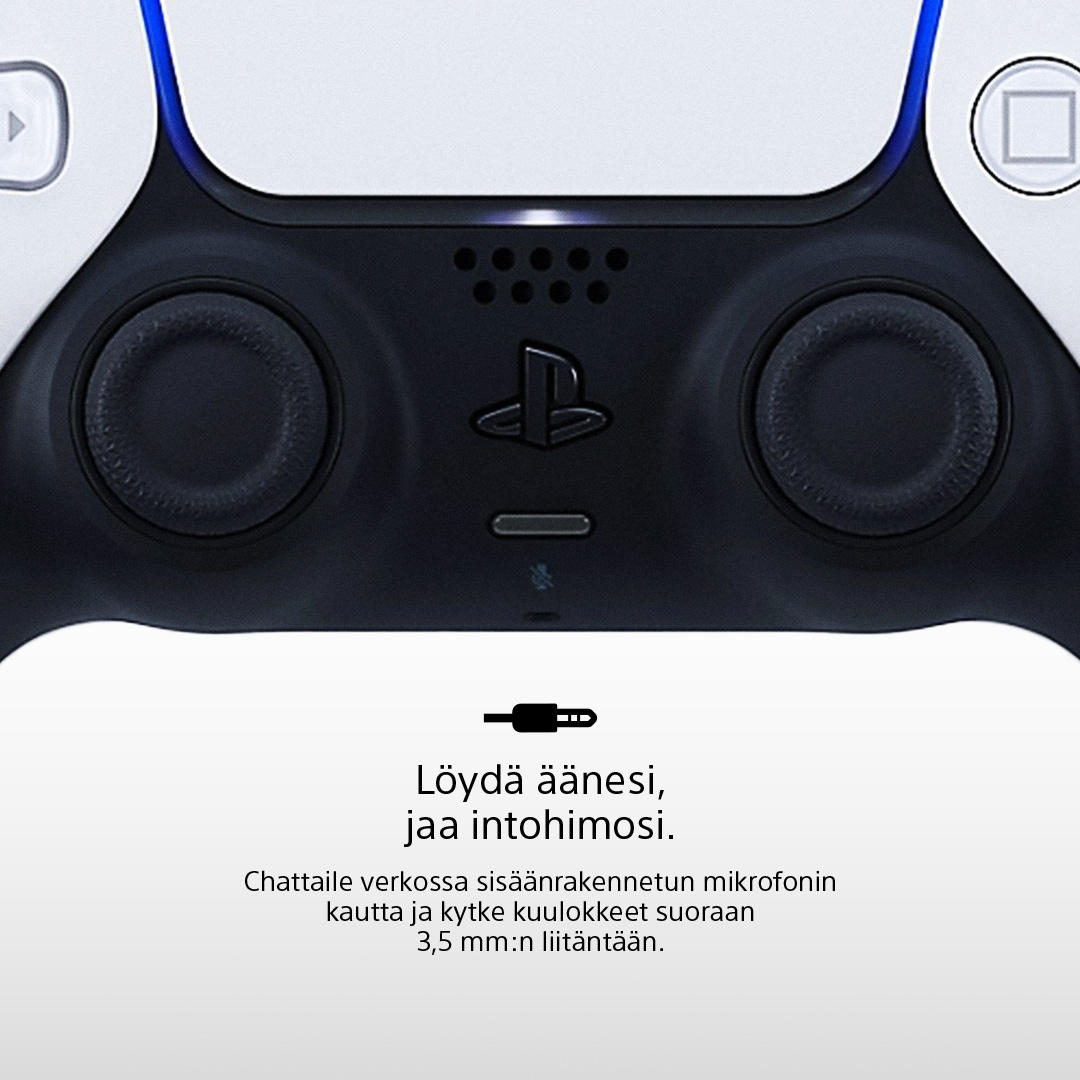 PS5:n langattomassa DualSense-ohjaimessa on lähemmäs pelejä vievä kosketuspalaute, dynaamisesti mukautuvat liipaisimet ja sisäänrakennettu mikrofoni - kaikki samassa ikonisessa ohjaimessa.