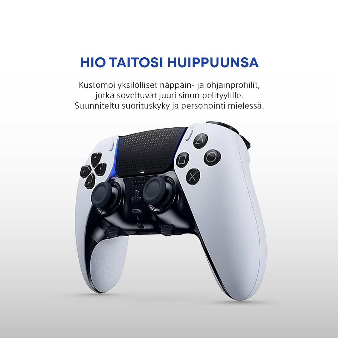 Hio taitojasi tyylikkäästi Midnight Black -malliston monipuolisesti muokattavalla langattomalla DualSense Edge® -ohjaimella. Mukana toimitettavalla Midnight Black -kantolaukulla voit ottaa ohjaimen ja sen komponentit helposti mukaan sinne, minne peli vie