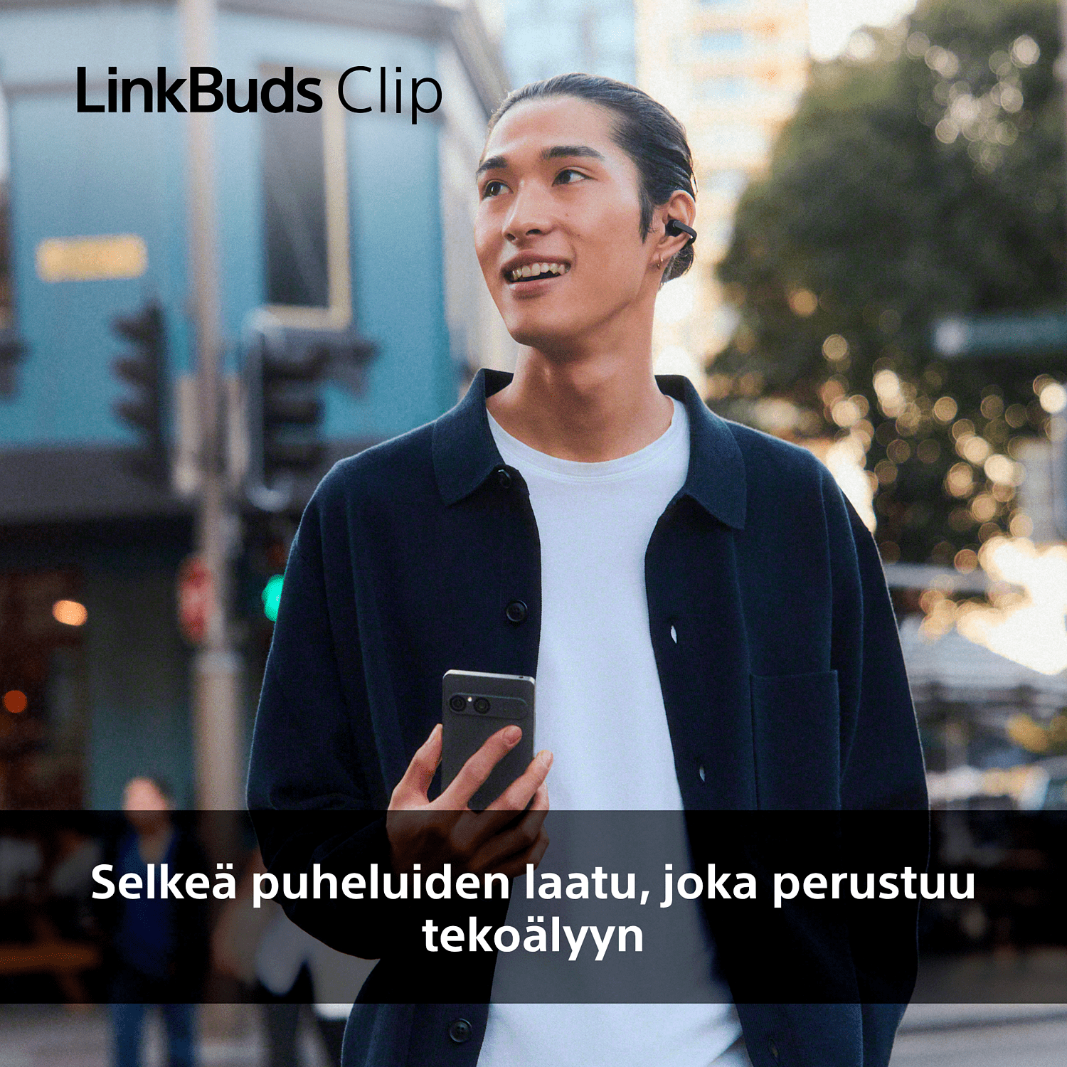 LinkBuds Clip ‑kuulokkeissa on kaksi mikrofonia, tekoälypohjainen melunvaimennus sekä luujohtumisanturi, joka tunnistaa puheäänen värähtelyt. Tuloksena on kirkas ja luonnollinen puheääni - myös meluisissa ympäristöissä.