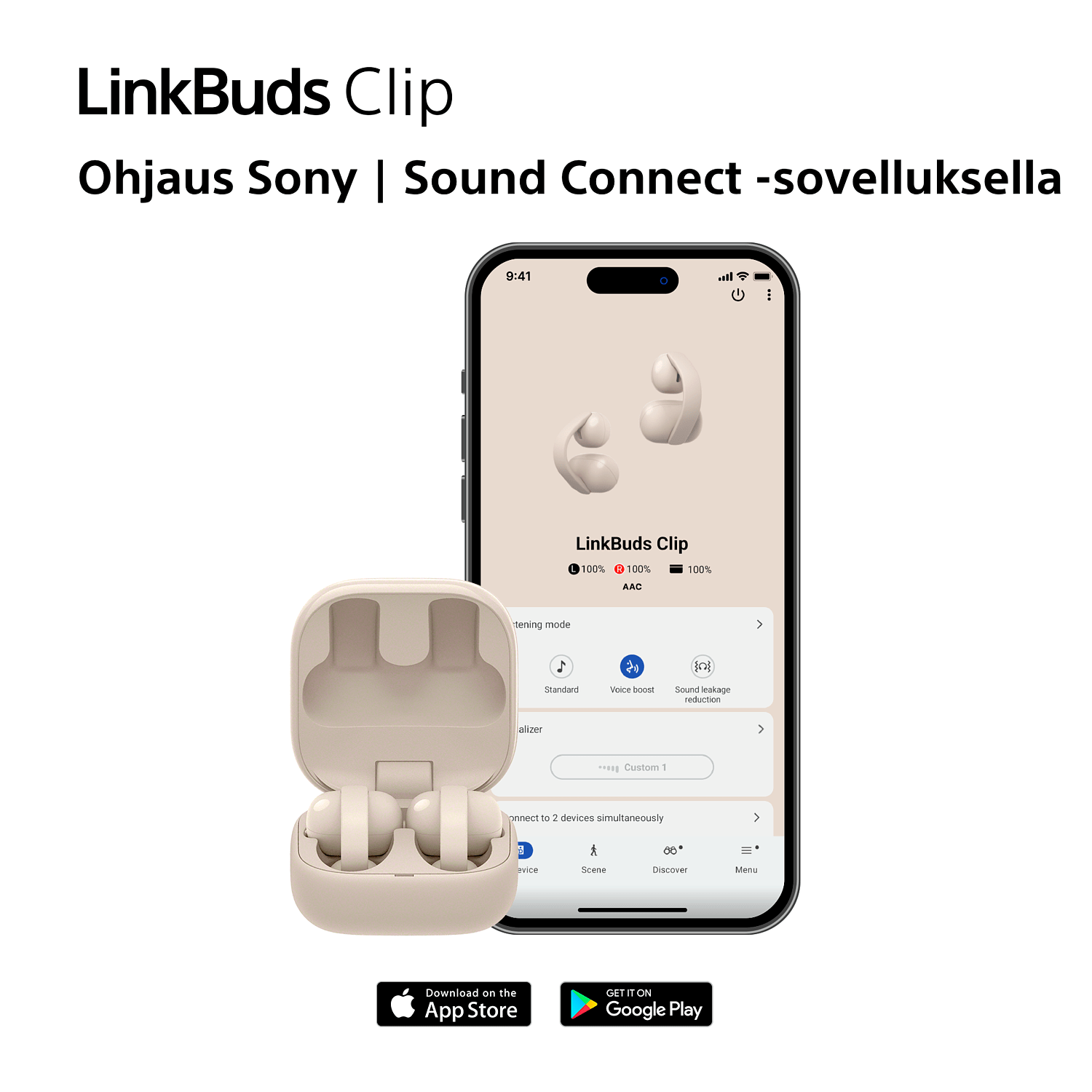 Sony LinkBuds Clip ‑kuulokkeiden avulla kuuntelet musiikkia, podcasteja ja puheluita koko päivän ilman, että irtaudut ympäristöstäsi. Avoin open‑ear‑muotoilu ja kevyt klipsirakenne tekevät näistä nappikuulokkeista täydellisen valinnan työhön, liikkumiseen ja vapaa‑aikaan.