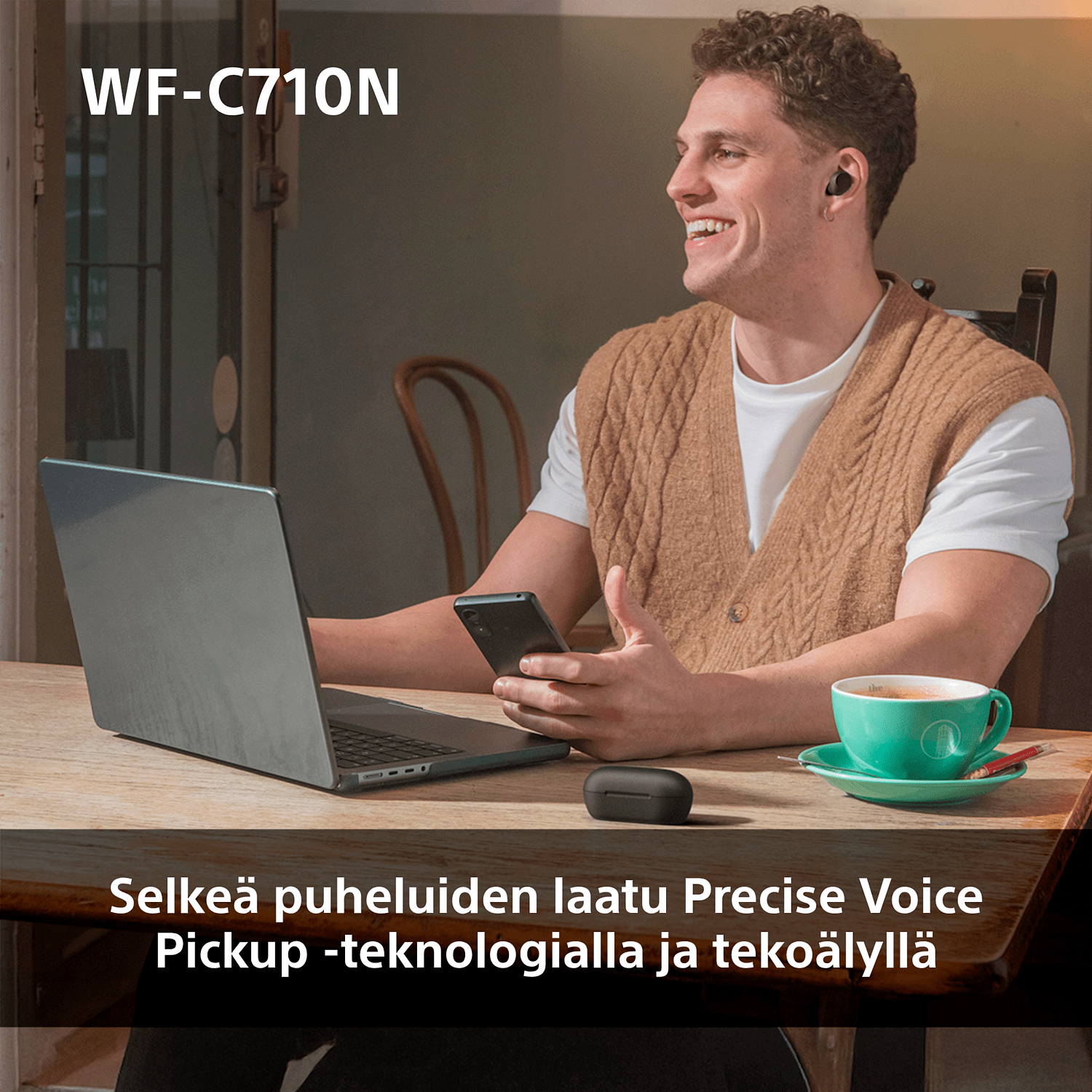 WF-C710N käyttää tekoälyä hyödyntävää Precise Voice Pickup -teknologiaa, joten puhelut ovat selkeitä myös meluisissa ympäristöissä. Multipoint Connection -tekniikan ansiosta nämä kuulokkeet voivat muodostaa yhteyden kahteen Bluetooth-laitteeseen samanaikaisesti ja vaihtaa niiden välillä saumattomasti.