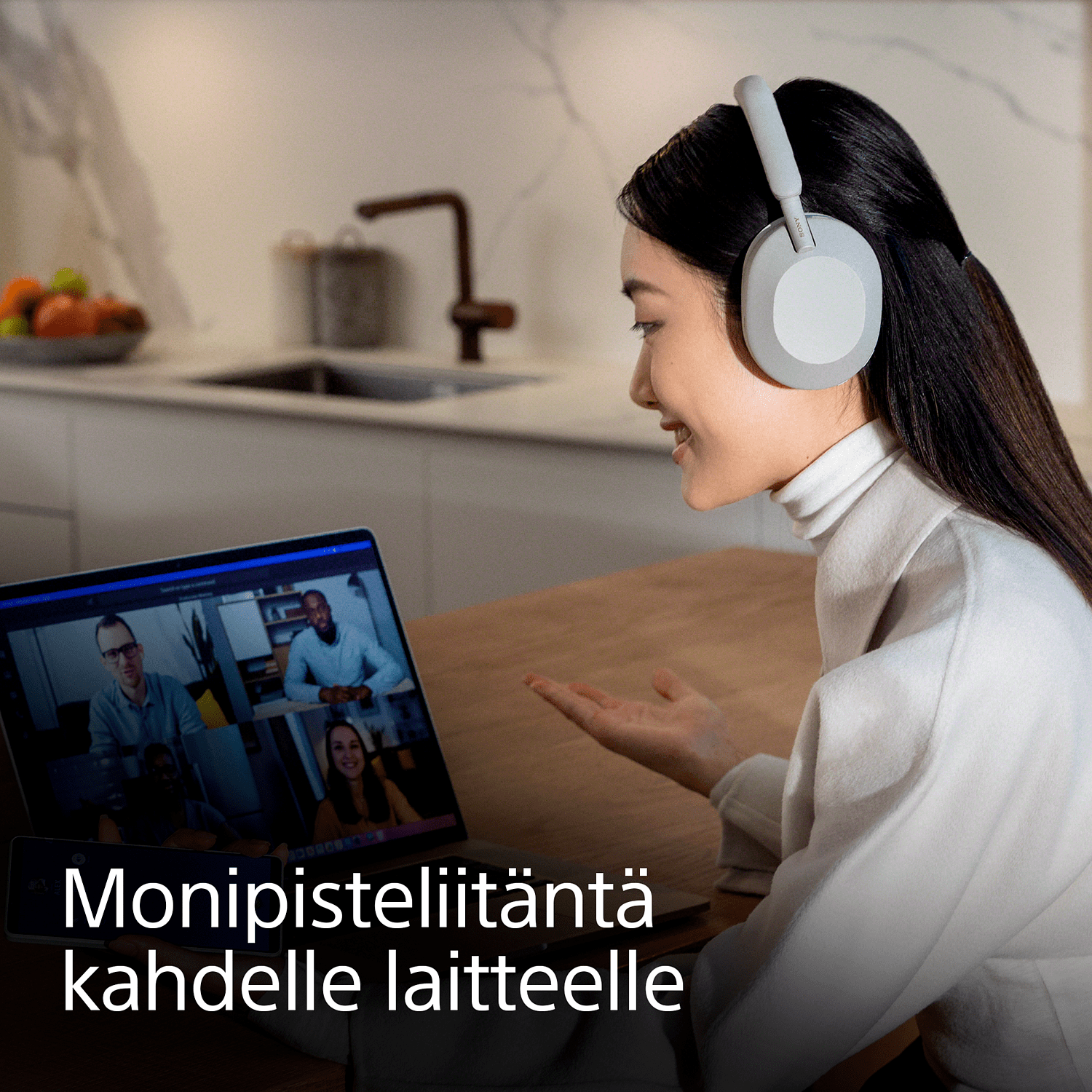 Nämä Bluetooth®-kuulokkeet voidaan yhdistää kahteen laitteeseen samanaikaisesti, mikä lisää täydellistä käytännöllisyyttä. Kun saat puhelun, kuulokkeet yhdistävät automaattisesti oikeaan laitteeseen.