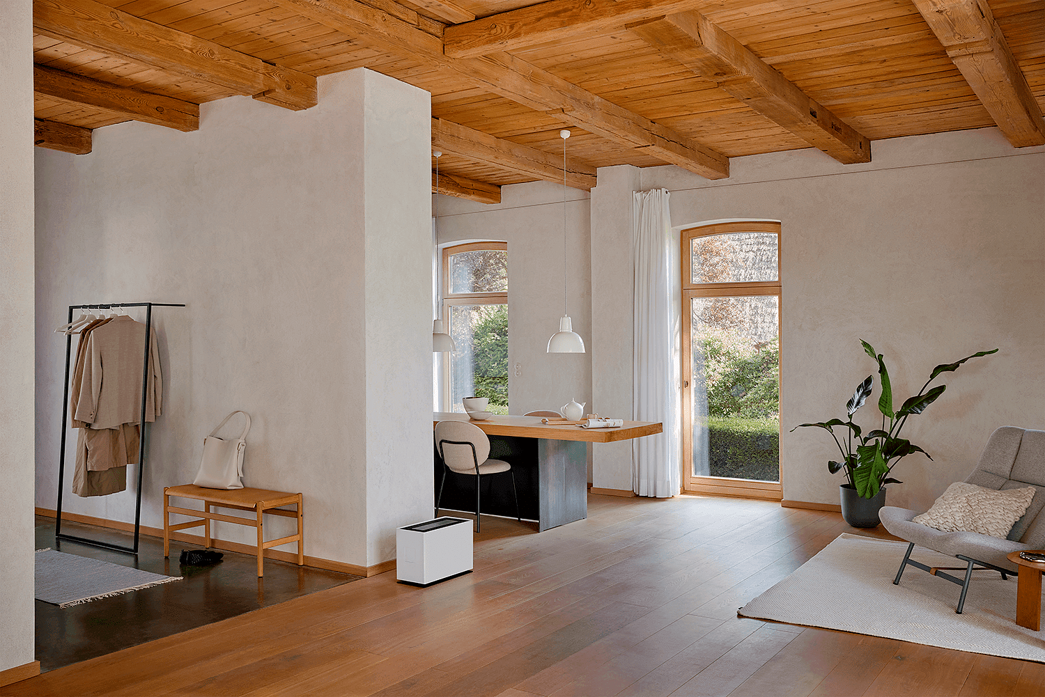Käyttö on sujuvaa kosketusohjauksen ja digitaalisen näytön ansiosta. Wi-Fi-yhteyden kautta laitetta voi hallita etänä Stadler Form -sovelluksella, josta näkee reaaliaikaisesti kosteustason ja veden määrän sekä voi aktivoida turbo-tilan ennen kotiin palaamista. Vesisäiliö on tilava, 7,1 litraa, ja täytettävissä helposti käytön aikana sivuluukun kautta. Vedenpinnan taso valaistaan automaattisesti ja näkyy myös digitaalisesti.