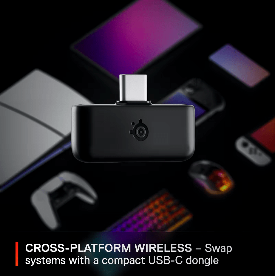 Nämä pelikuulokkeet ovat yhteensopivat useiden alustojen kanssa, ja mukana toimitettavan USB-C-donglen avulla voit liittää ne PC:hen, PlayStationiin, Switchiin, Maciin, VR-laitteisiin, kannettaviin pelilaitteisiin ja mobiililaitteisiin.