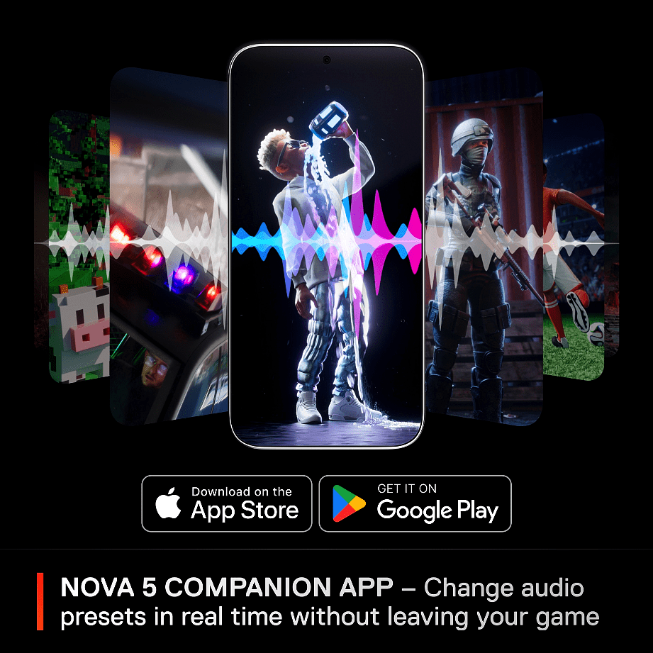 Neodyymimagneettiset ajurit tuottavat kristallinkirkkaat korkeat äänet, tarkat keskitason äänet ja syvän basson, joten jokainen pelin ääniefekti kuuluu selkeästi.