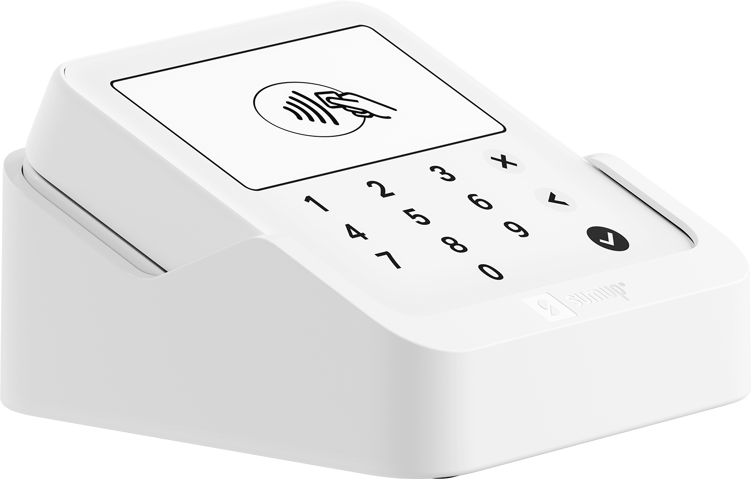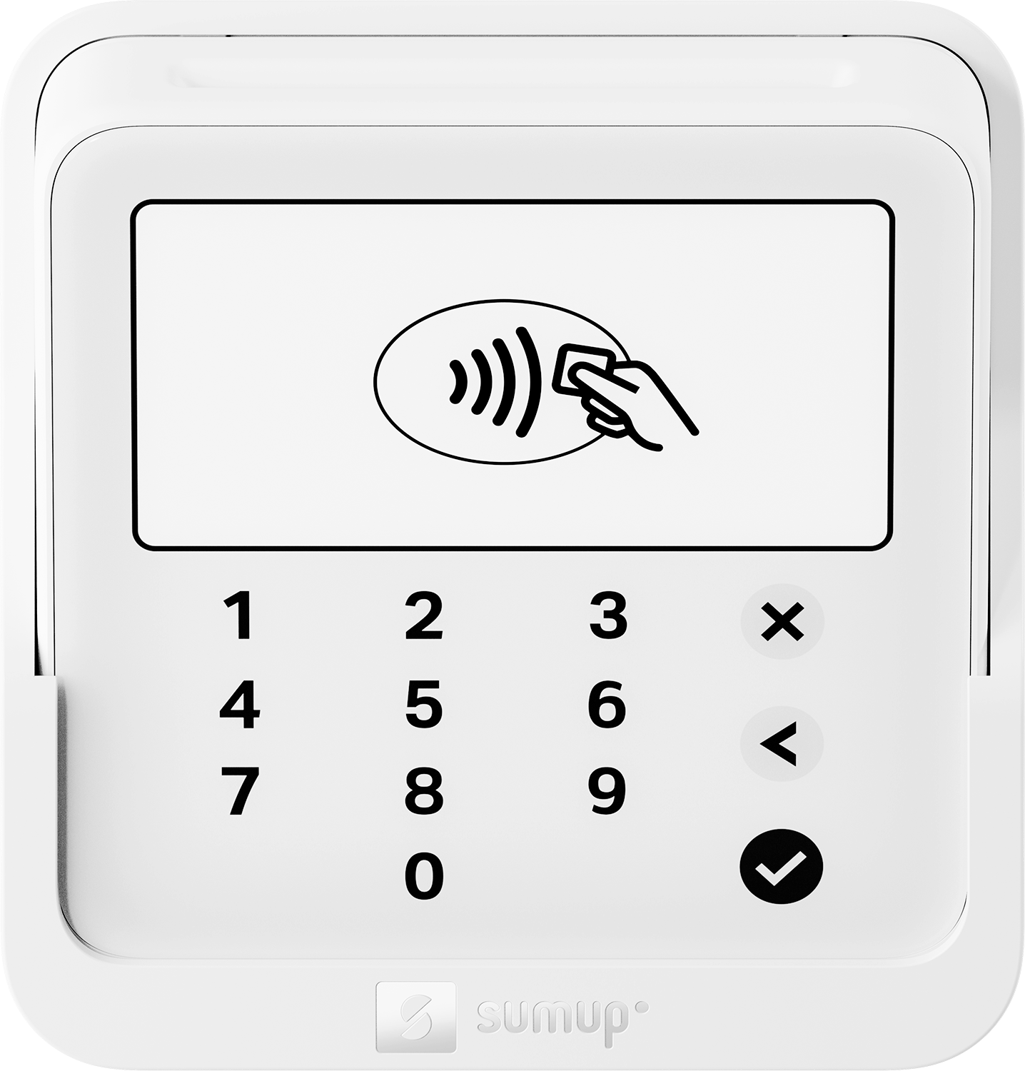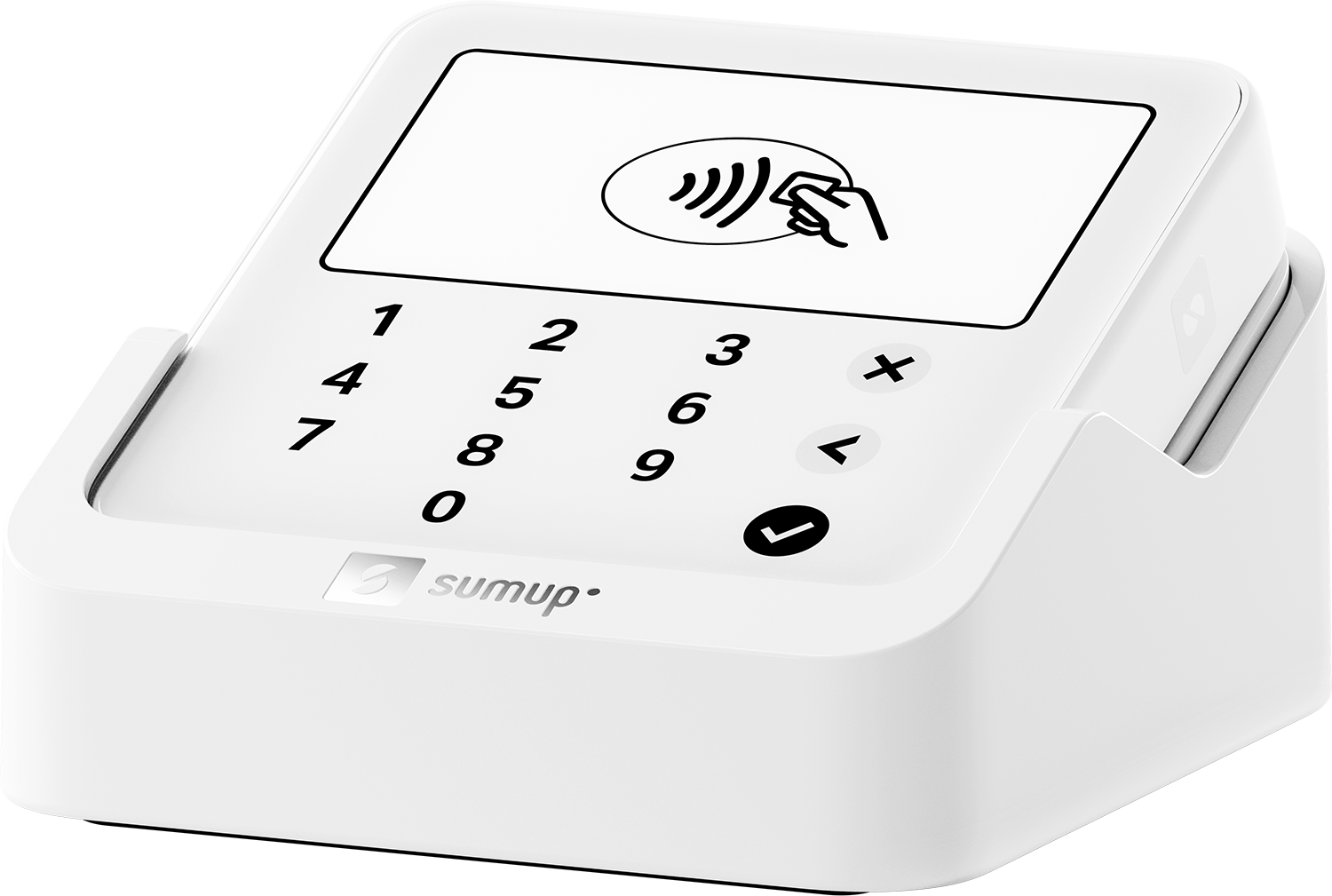 Tehokkaan akun ansiosta voit käsitellä jopa 1000 maksutapahtumaa yhdellä latauksella. SumUp-sovelluksen avulla voit helposti lähettää kuitteja ja laskuja, luoda QR-koodeja, hallita tuoteluetteloita ja seurata myyntiä, mikä helpottaa tulo- ja veroraportointia. Tyylikäs latausasema varmistaa, että laitteesi virta riittää ympäri vuorokauden, ja toimii samalla näyttötelineenä, joka sopii täydellisesti myyntitiskillesi.