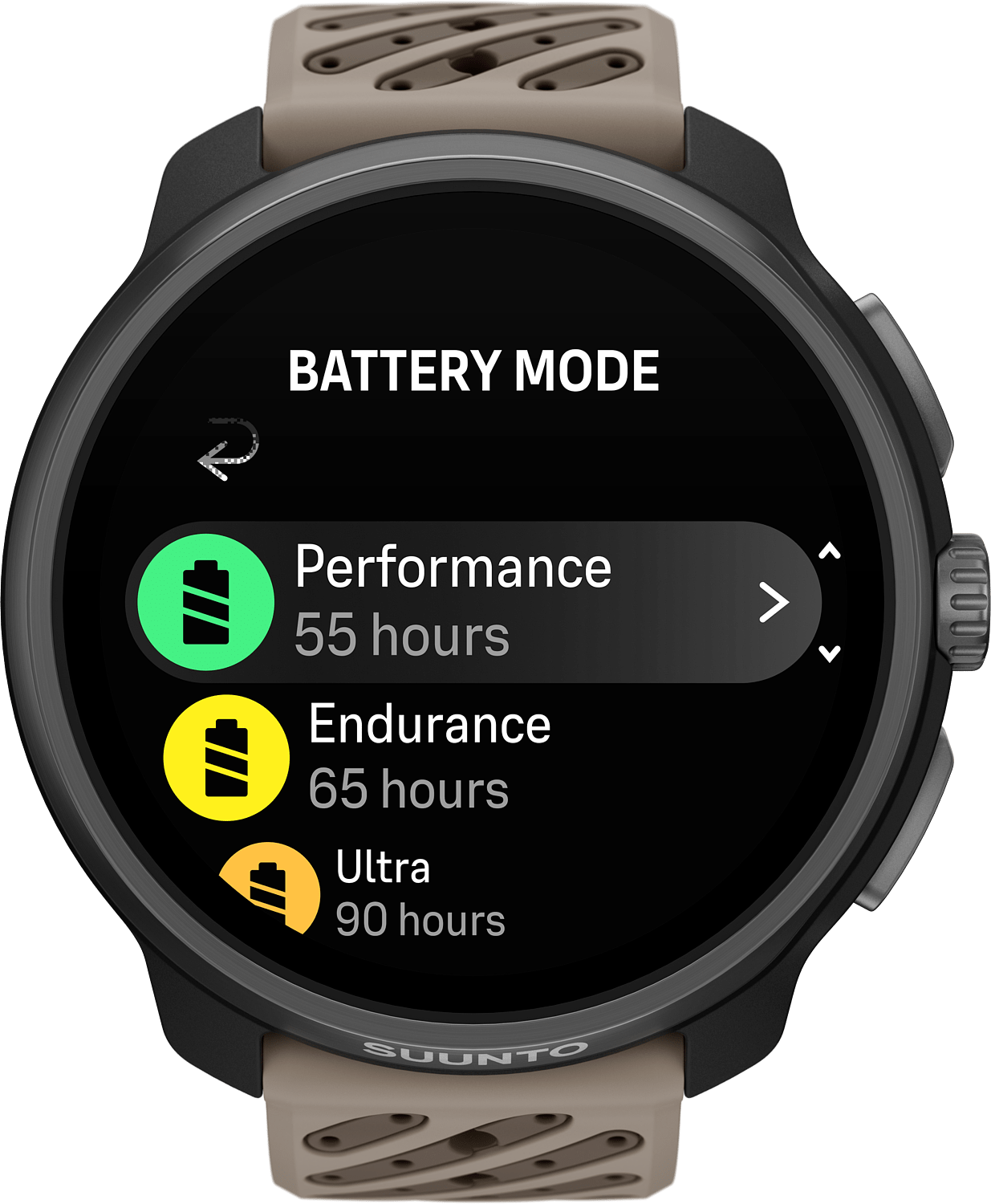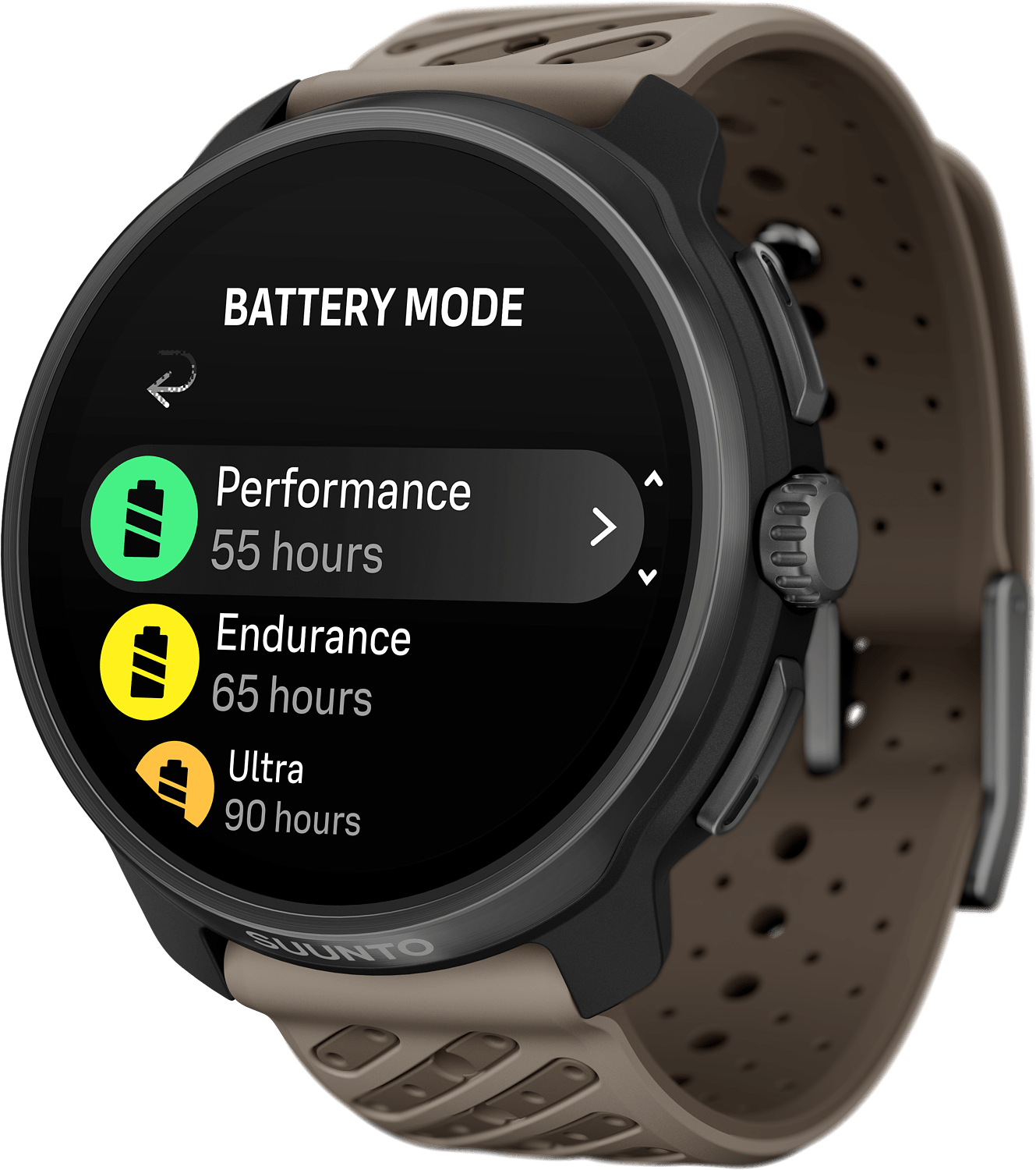 Kun seisot kisastartissa, viimeinen asia, josta pitäisi huolehtia, on kellon akku. Siksi Suunto Race 2 on varustettu luokkansa pitkäkestoisimmalla akulla ja uudistetulla, turvallisella latausliitännällä, joka vie sinut nopeasti takaisin vauhtiin. Harjoittele ja tutki omilla ehdoillasi - luottaen siihen, että kellosi pysyy mukana.