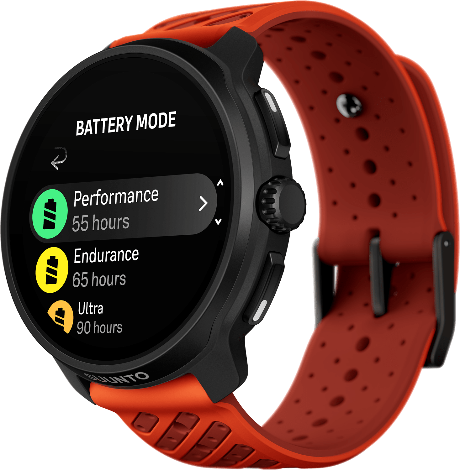 Kun seisot kisastartissa, viimeinen asia, josta pitäisi huolehtia, on kellon akku. Siksi Suunto Race 2 on varustettu luokkansa pitkäkestoisimmalla akulla ja uudistetulla, turvallisella latausliitännällä, joka vie sinut nopeasti takaisin vauhtiin. Harjoittele ja tutki omilla ehdoillasi - luottaen siihen, että kellosi pysyy mukana.