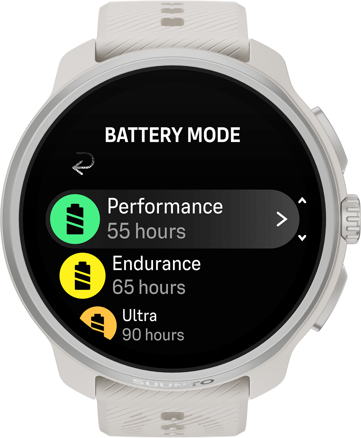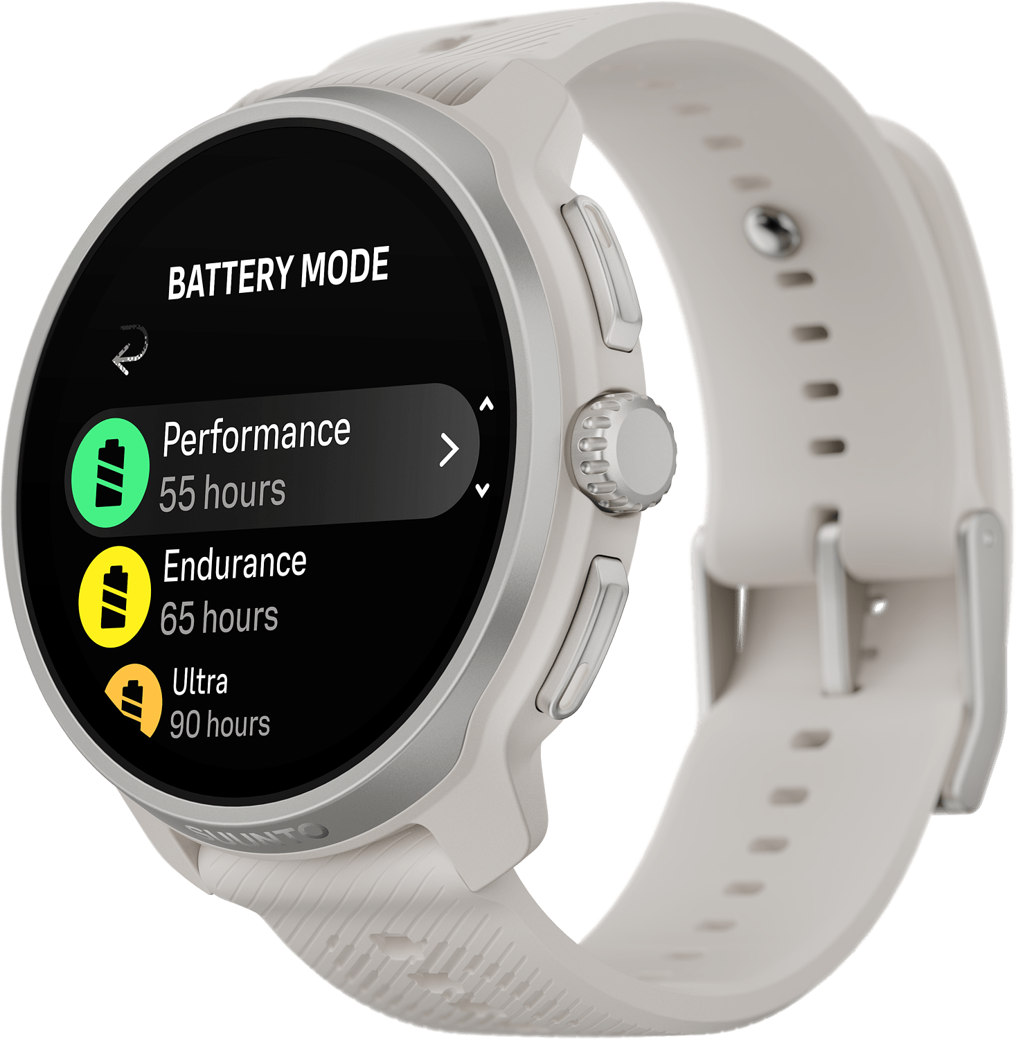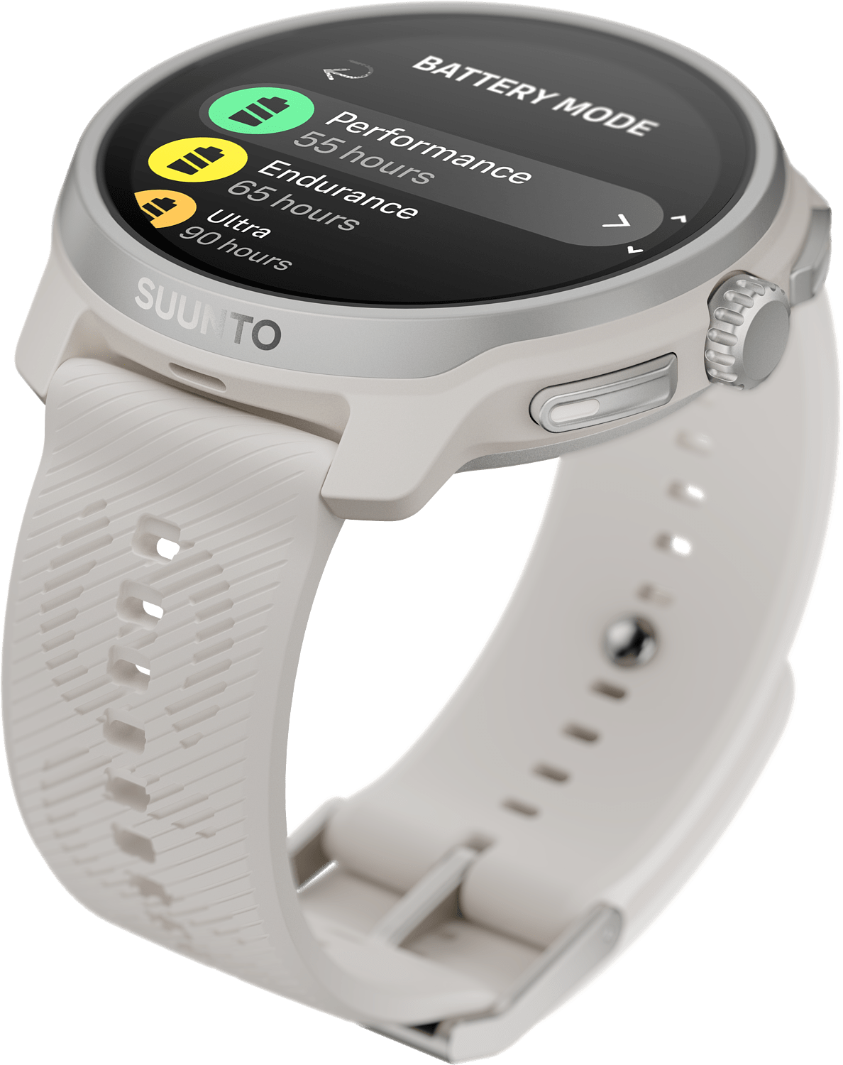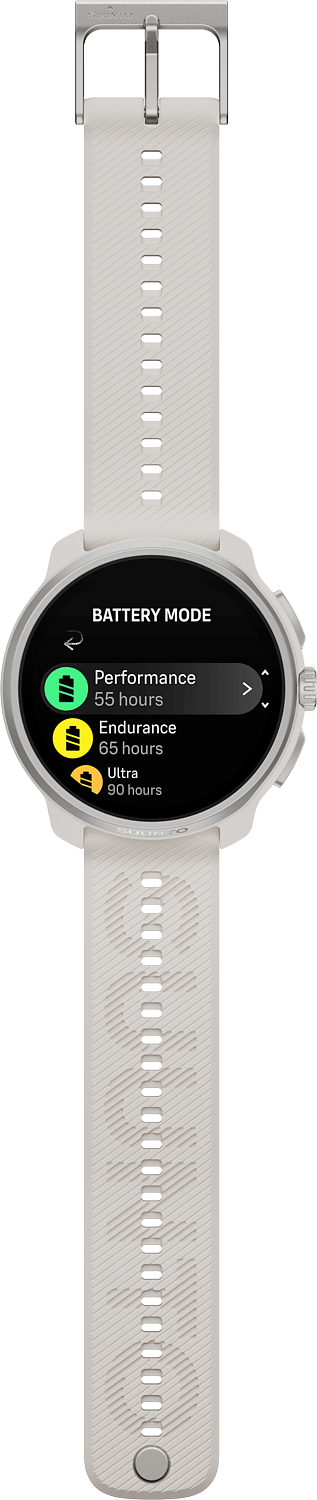 Kun seisot kisastartissa, viimeinen asia, josta pitäisi huolehtia, on kellon akku. Siksi Suunto Race 2 on varustettu luokkansa pitkäkestoisimmalla akulla ja uudistetulla, turvallisella latausliitännällä, joka vie sinut nopeasti takaisin vauhtiin. Harjoittele ja tutki omilla ehdoillasi - luottaen siihen, että kellosi pysyy mukana.