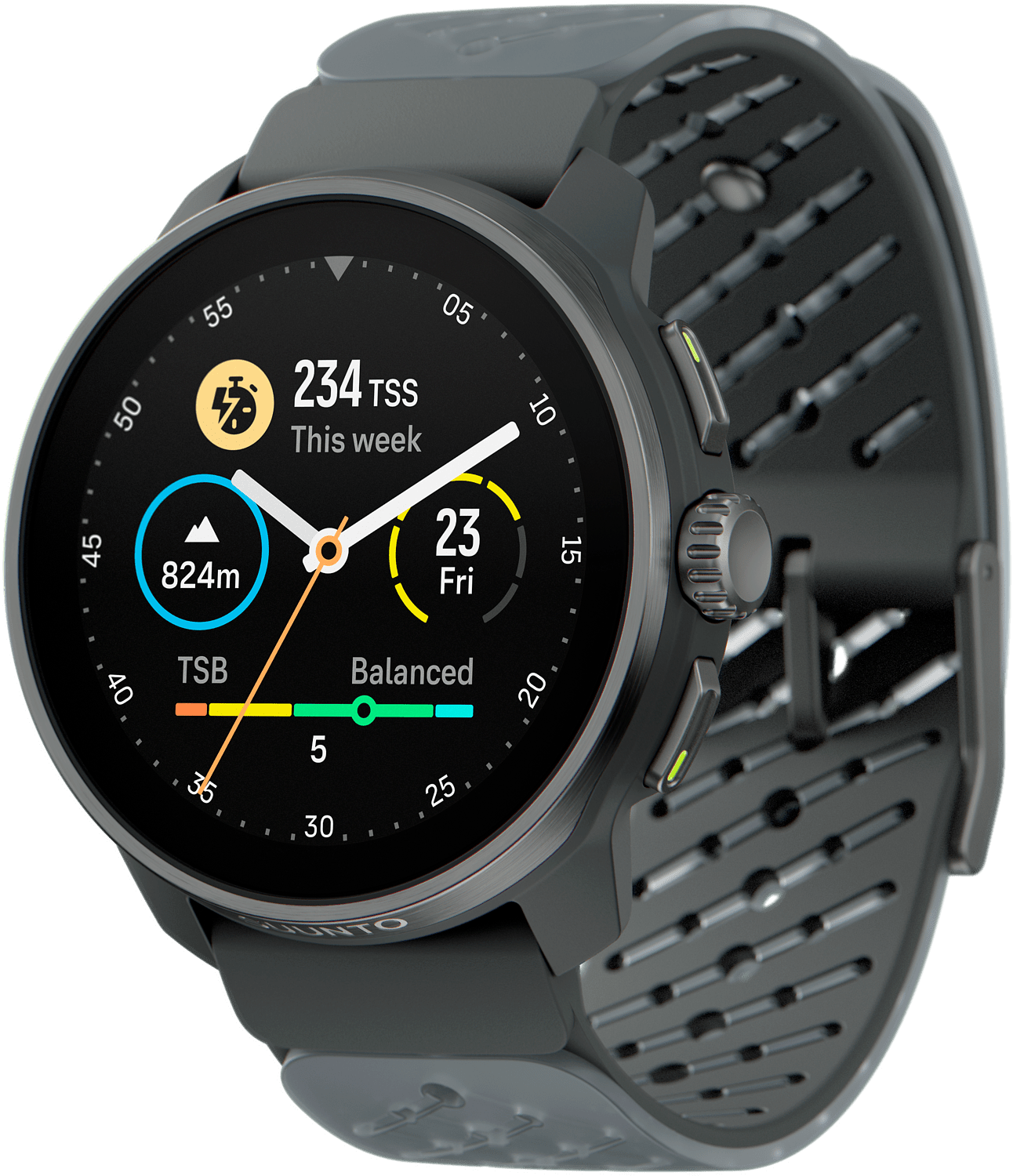 Suunto Race S antaa sinulle työkalut valmistautua kisaan tai haasteeseen ja tukee harjoittelun ja palautumisen tasapainoa. Suunto Race S, kuten alkuperäinen Suunto Race, on täydellinen ulkoiluun: seuraa huippuvoimaa pyöräillessä, automaattinen intervallitunnistus uinnissa tai reitin seuranta polkujuoksussa. Yli 95 eri urheilutilan ansiosta kello on valmis kaikkeen urheiluun. Lisäksi ominaisuudet kuten reitin navigointi ja "murupolku" ohjaavat sinua reiteillä, joten voit keskittyä kilpailuun tai harjoitteluun pelkäämättä eksymistä.