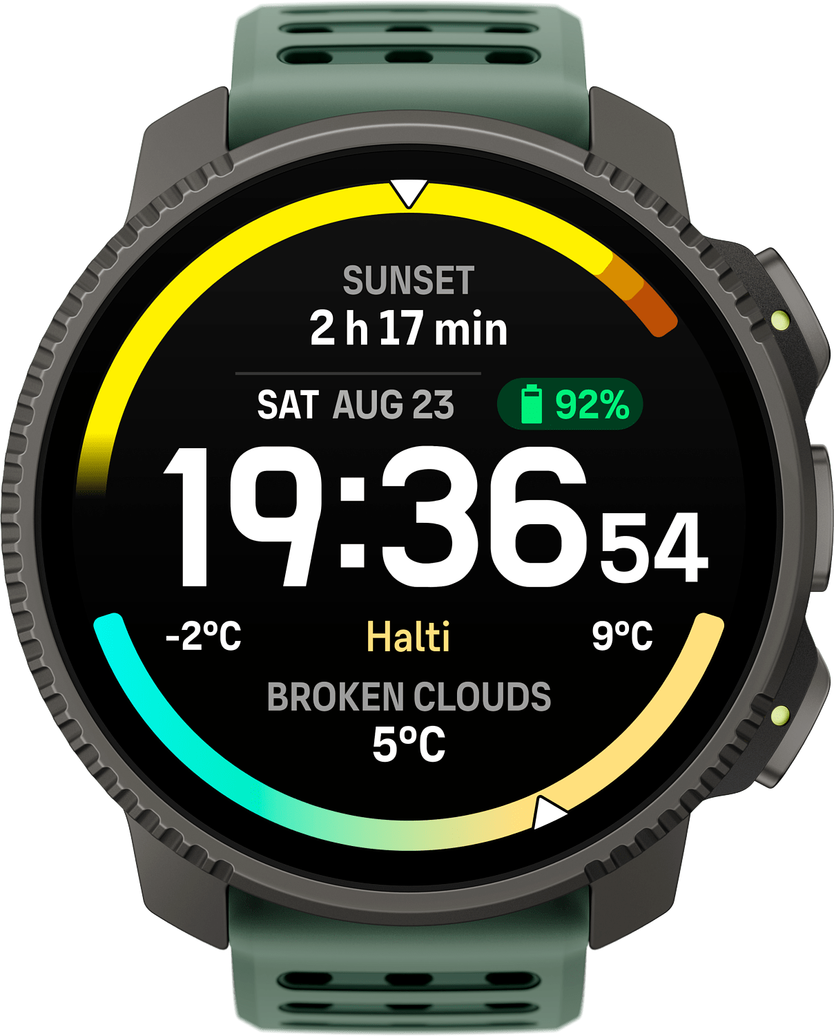 Seikkailijoille, jotka vaativat parasta testatessaan omia rajojaan - kaukana merkityiltä poluilta ja matkapuhelinverkkojen kuuluvuusalueilta. Suunto Vertical 2 on nyt entistä parempi. Siinä on alkuperäistä kirkkaampi ja suurempi AMOLED-näyttö, uudelleensuunniteltu optinen sykeanturi ja entistä paremmin ranteeseen sopiva tasainen taustapaneeli. Sisäänrakennettu LED-taskulamppu tuo turvaa ja mukavuutta pimeässä. Nämä kaikki yhdistettynä todella pitkään akun käyttöaikaan, edistyneisiin navigointityökaluihin ja kestävään muotoiluun antavat kellolle juuri ne ominaisuudet, joista Vertical-tuoteperhe tunnetaan. Suunto Vertical 2 on tehty rajojen rikkomiseen, aina suunnittelusta ja harjoittelusta toteutukseen.