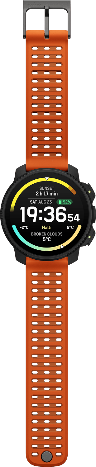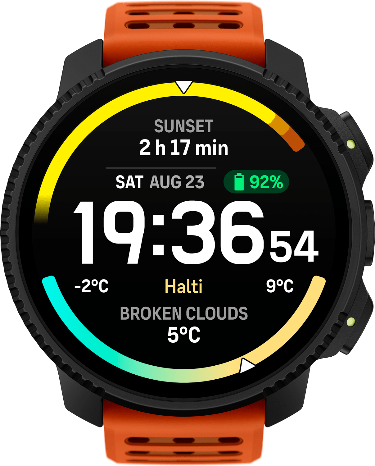 Seikkailijoille, jotka vaativat parasta testatessaan omia rajojaan - kaukana merkityiltä poluilta ja matkapuhelinverkkojen kuuluvuusalueilta. Suunto Vertical 2 on nyt entistä parempi. Siinä on alkuperäistä kirkkaampi ja suurempi AMOLED-näyttö, uudelleensuunniteltu optinen sykeanturi ja entistä paremmin ranteeseen sopiva tasainen taustapaneeli. Sisäänrakennettu LED-taskulamppu tuo turvaa ja mukavuutta pimeässä. Nämä kaikki yhdistettynä todella pitkään akun käyttöaikaan, edistyneisiin navigointityökaluihin ja kestävään muotoiluun antavat kellolle juuri ne ominaisuudet, joista Vertical-tuoteperhe tunnetaan. Suunto Vertical 2 on tehty rajojen rikkomiseen, aina suunnittelusta ja harjoittelusta toteutukseen.