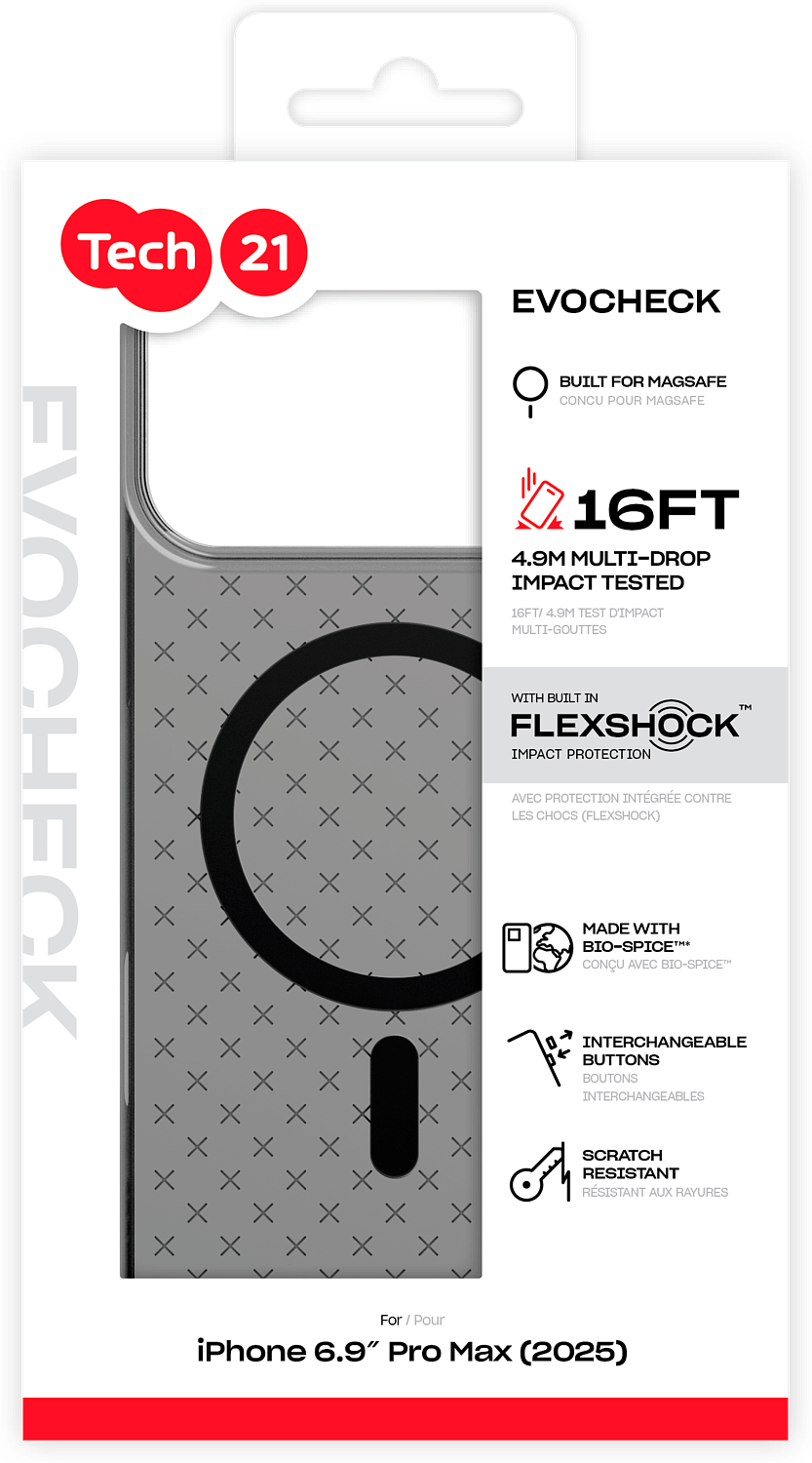 Tyylikkyys ja tiede kohtaavat EvoCheck-suojakotelossa iPhone 17 -sarjalle - myydyimmässä kotelossamme, joka on suunniteltu uudelleen Applen tehokkaimmalle laitteelle. EvoCheck on valmistettu FlexShock -materiaalista, joka vaimentaa ja jakaa iskun voiman pitääkseen laitteesi turvassa. Materiaalin ansiosta saat suojan jopa 4,9 metrin pudotuksilta.