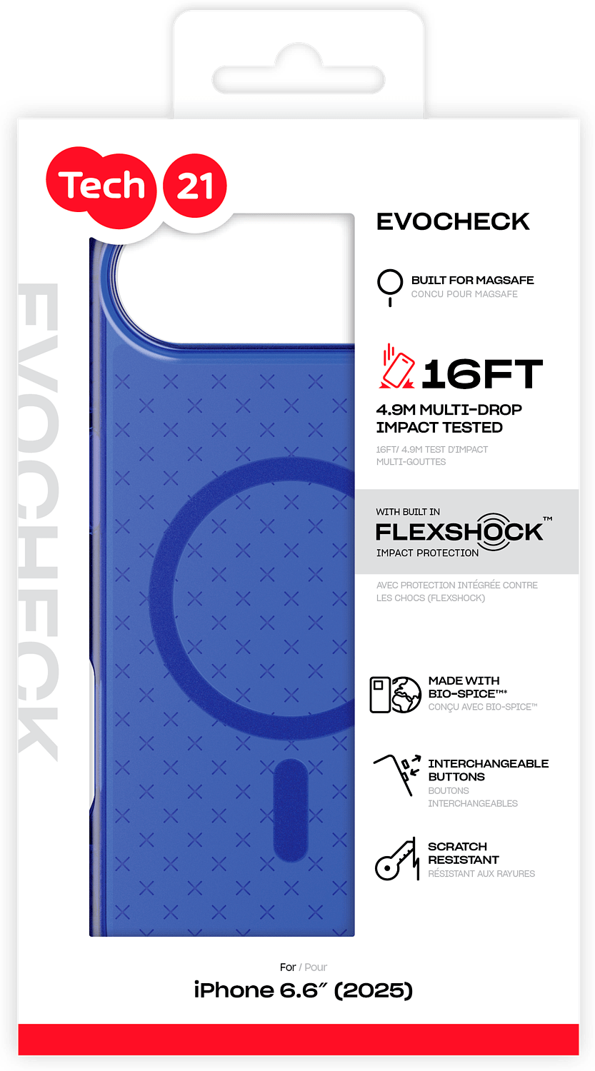 Tyylikkyys ja tiede kohtaavat EvoCheck-suojakotelossa iPhone 17 -sarjalle - myydyimmässä kotelossamme, joka on suunniteltu uudelleen Applen tehokkaimmalle laitteelle. EvoCheck on valmistettu FlexShock -materiaalista, joka vaimentaa ja jakaa iskun voiman pitääkseen laitteesi turvassa. Materiaalin ansiosta saat suojan jopa 4,9 metrin pudotuksilta.