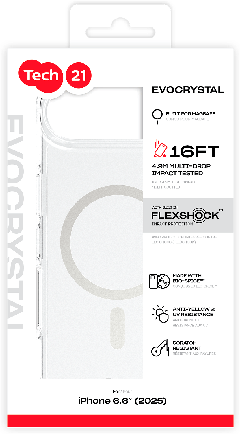 EvoCrystal iPhone 17 -sarja yhdistää vertaansa vailla olevan kirkkauden ja edistyksellisen suojan, joka kestää jopa 4,9 metrin pudotuksen. FlexShock -materiaalin ansiosta, joka absorboi ja hajottaa iskun voiman, laitteesi pysyy turvassa pudotuksesta toiseen.