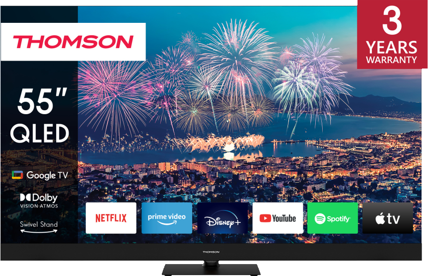 Nauti suosikkiviihteestäsi upeassa 4K UHD -laadussa Thomson QLED Plus UHD Google TV:n avulla.