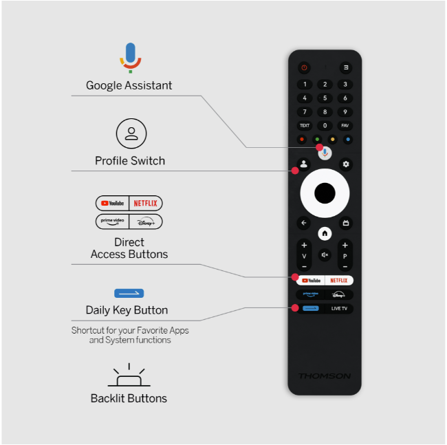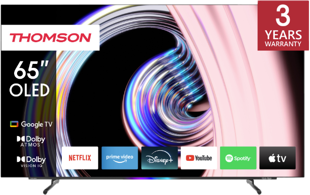 Thomson Google TV 65" OLED yhdistää upean kuvanlaadun, elokuvamaisen äänen ja älykkäät ominaisuudet, tarjoten ensiluokkaisen viihdekokemuksen, joka tekee vaikutuksen missä tahansa kodissa.