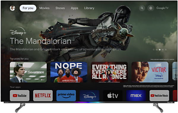 Google TV -käyttöjärjestelmä tuo kaikki suosikkisi suoratoistopalvelut ja sovellukset yhteen helppokäyttöiseen käyttöliittymään. Far-Field teknologian ansiosta voit käyttää äänikomentoja huoneen toiselta puolelta ilman kaukosäädintä. Ergonomisessa kaukosäätimessä on Google Assistant -painike ja taustavalaistus, joka helpottaa käyttöä hämärässä.