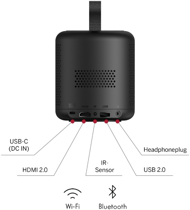 Liitännät: HDMI 2.0, USB 2.0, virta (USB-C), kuulokeliitäntä