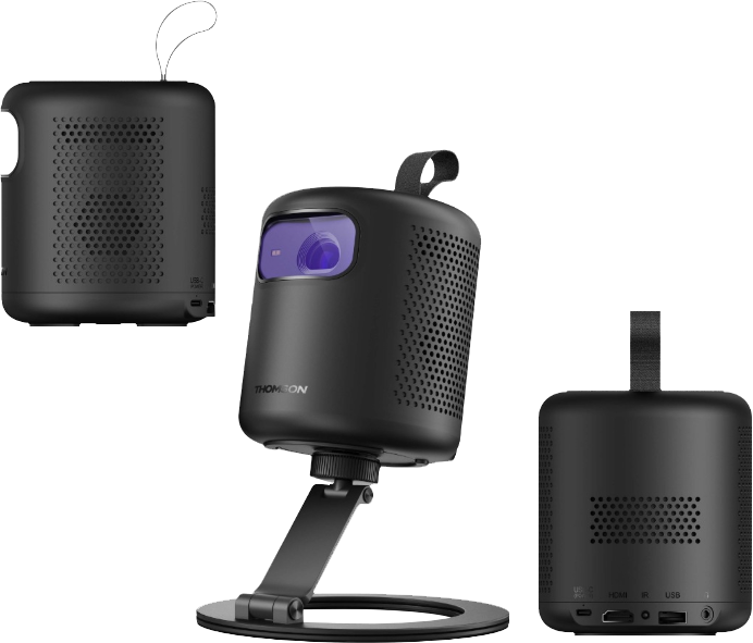 Projektori, kaukosäädin, säädettävä jalusta, kova kuljetuskotelo, virtalähde, virtakaapeli, 2 x AAA-paristo