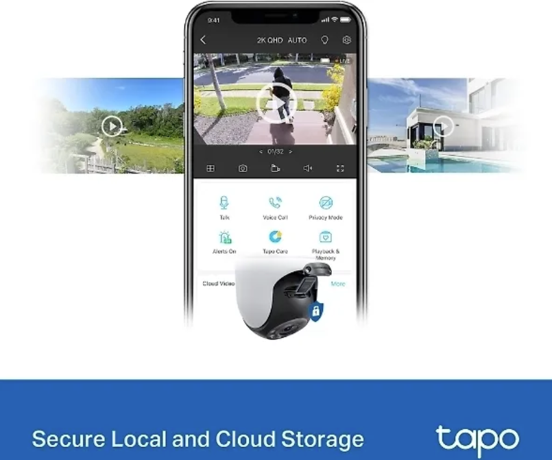 Kameran asenus tapahtuu helppokäyttöisen ja ilmaisen TP-Link Tapo -sovelluksen kautta. Sovellus on saatavissa sekä Applen iOS- että Android -käyttöjärjestelmiin. Itse kameran asennus on vaivatonta useiden vaihtoehtojen ansiosta, olipa se sitten seinällä, katossa tai pylväässä. Tallenna videot joko erikseen hankittavalle microSD-muistikortille (jopa 512 GB) tai Tapo Care -pilvipalveluun.