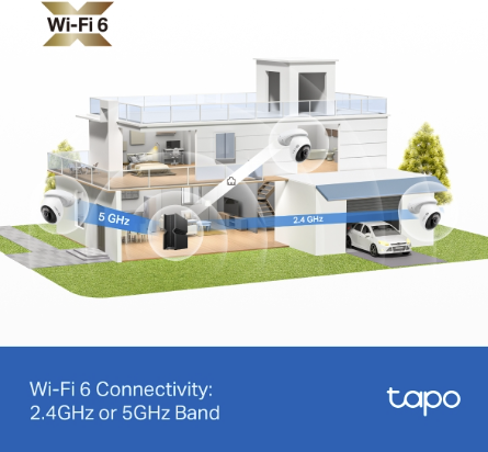 Tapo C560WS tukee kaksitaajuuksista Wi-Fi 6 -yhteyttä (2.4 GHz ja 5 GHz), mikä takaa nopean ja vakaan tiedonsiirron. Ethernet-portti tarjoaa vaihtoehtoisen kiinteän yhteyden, mikä lisää asennusmahdollisuuksia ja luotettavuutta.