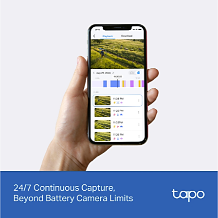 Tuki 24/7 jatkuvalle tallennukselle 4K-laadulla paikallisesti (microSD max. 512 Gt) sekä pilvitallennukselle Tapo Care -palvelussa, joka tarjoaa salatun suojauksen, varmuuskopiot ja 30 päivän videotallenteet.