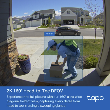 TP-Link Tapo D210 on akkukäyttöinen 2K -ovikellokamera, joka tuo kotiisi älykkään ja turvallisen sisäänkäynnin valvonnan. Sen laaja 160° katselukulma, kristallinkirkas 2K 3MP -kuvanlaatu ja tekoälypohjainen tunnistus varmistavat, että näet ja tiedät aina, kuka on ovellasi - päivällä tai yöllä.