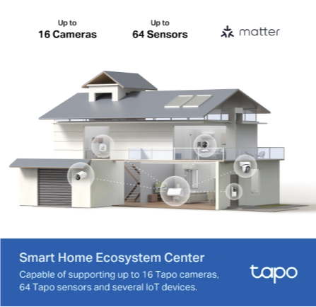 Yhdistä jopa 16 Tapo-kameraa ja 64 älyanturia, ja hallitse koko järjestelmää Tapo-sovelluksella. HDMI-videolähtö tuo live-kuvan suoraan televisioon tai valvontamonitoriin. Tuki Matter-standardille sekä Tapo- ja Kasa-tuotteille tekee H500:sta monipuolisen ja yhteensopivan ratkaisun älykotiin tai yritykseen.