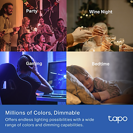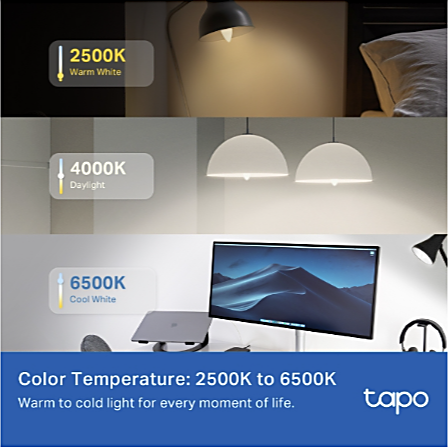 Tapo L430C tuo kotiisi uuden ulottuvuuden valaistukseen. Valitse jopa 16 miljoonaa väriä, säädä kirkkaus 1-100 % välillä ja muokkaa värilämpötilaa 2500 K - 6500 K tarpeidesi mukaan. Luo täydellinen tunnelma juhliin, rentoutumiseen tai iltalukemiseen - kaikki yhdellä napautuksella.