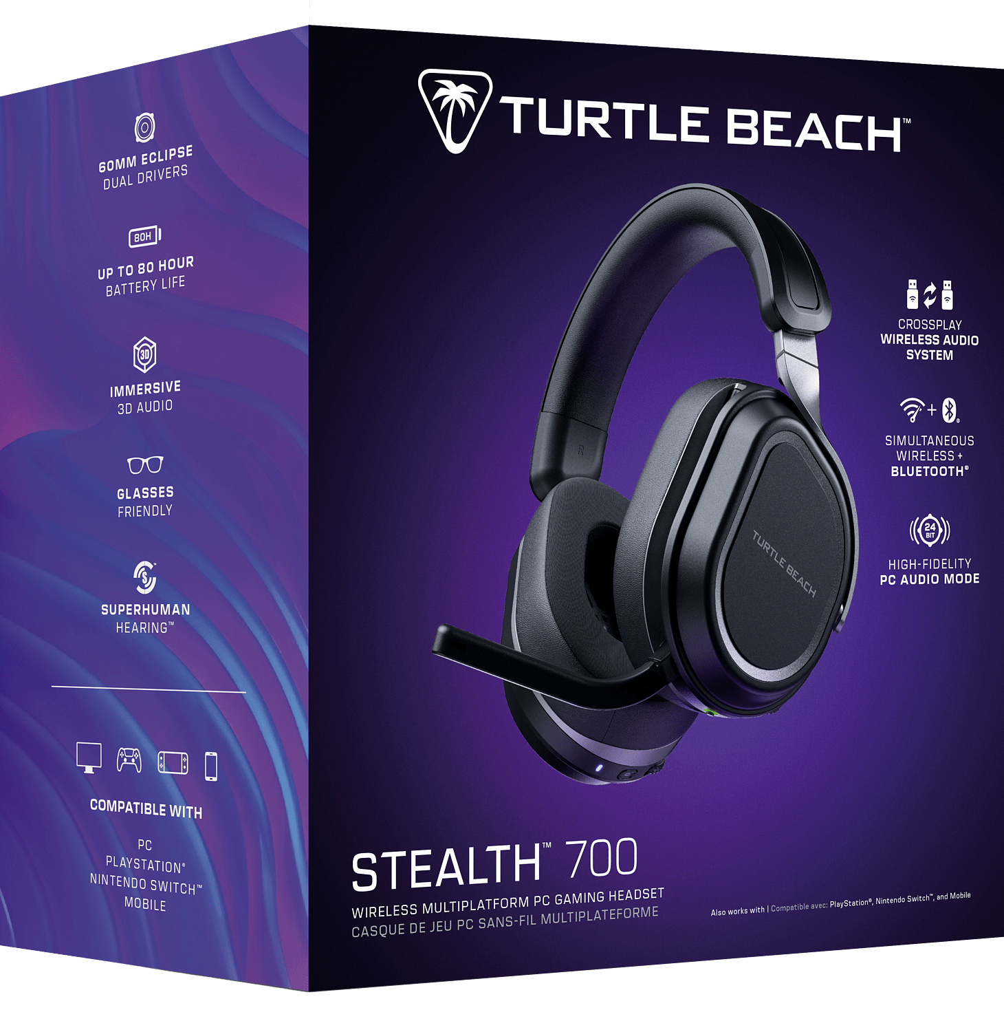 Langattomat Turtle Beach Stealth 700 Gen 3 -pelikuulokkeet tarjoavat täysin uuden langattoman CrossPlay-järjestelmän, jossa on kaksi USB-lähetintä ja samanaikainen Bluetooth®-yhteys. Tämä mahdollistaa nopean ja helpon yhteyden pelikonsoleihin, PC:hen ja mobiililaitteisiin.