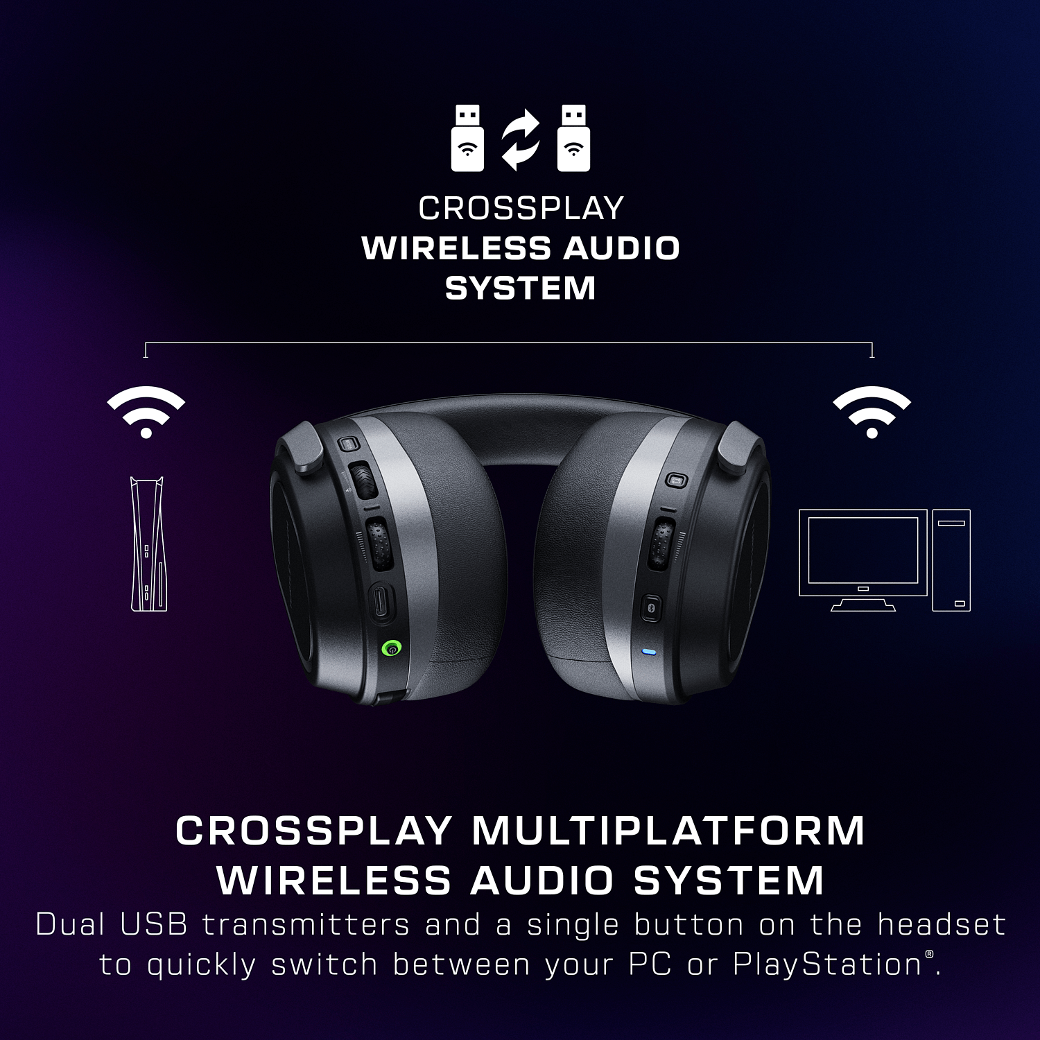 Kahden langattoman USB-lähettimen ja kuulokkeissa olevan yhden painikkeen avulla voit vaihtaa nopeasti suosikkikonsolisi tai -tietokoneesi välillä.