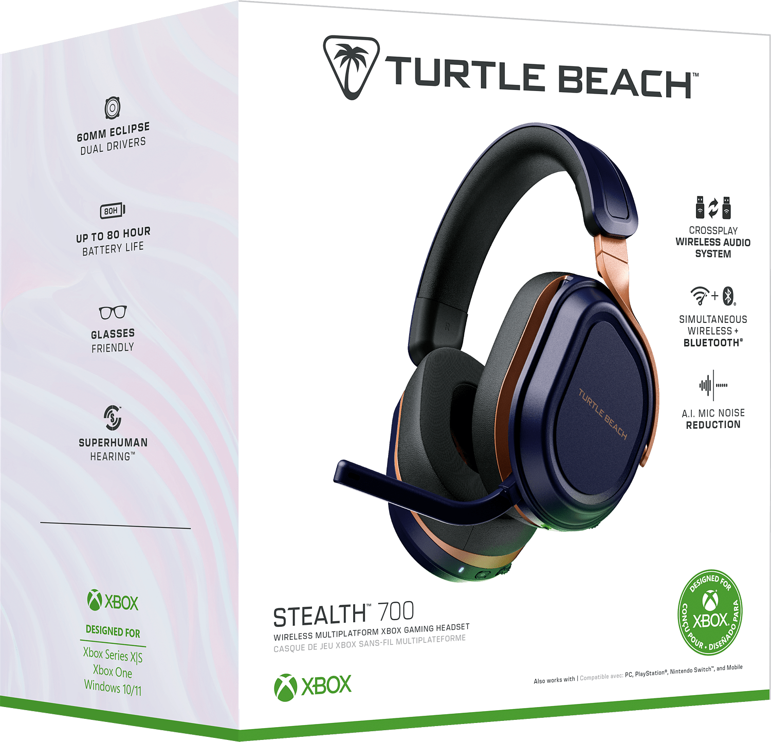 Valtavat, 60 mm:n Eclipse Dual Drivers -kuulokkeet tuottavat vertaansa vailla olevaa äänenlaatua. 3. sukupolven kääntyvä, mykistettävä mikrofoni, jossa on A.I.:n melunvaimennus, mahdollistaa poikkeuksellisen selkeän äänentarkkuuden.