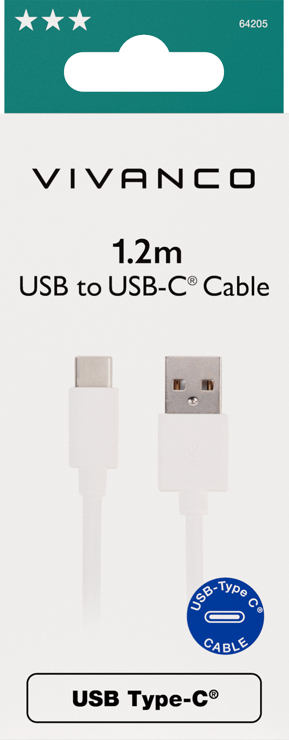 Vivanco USB-C to USB-A 2.0 -lataus- ja synkronointikaapeli. Yhteensopiva kaikkien USB-C-laitteiden kanssa. Pituus 1,2 metriä.