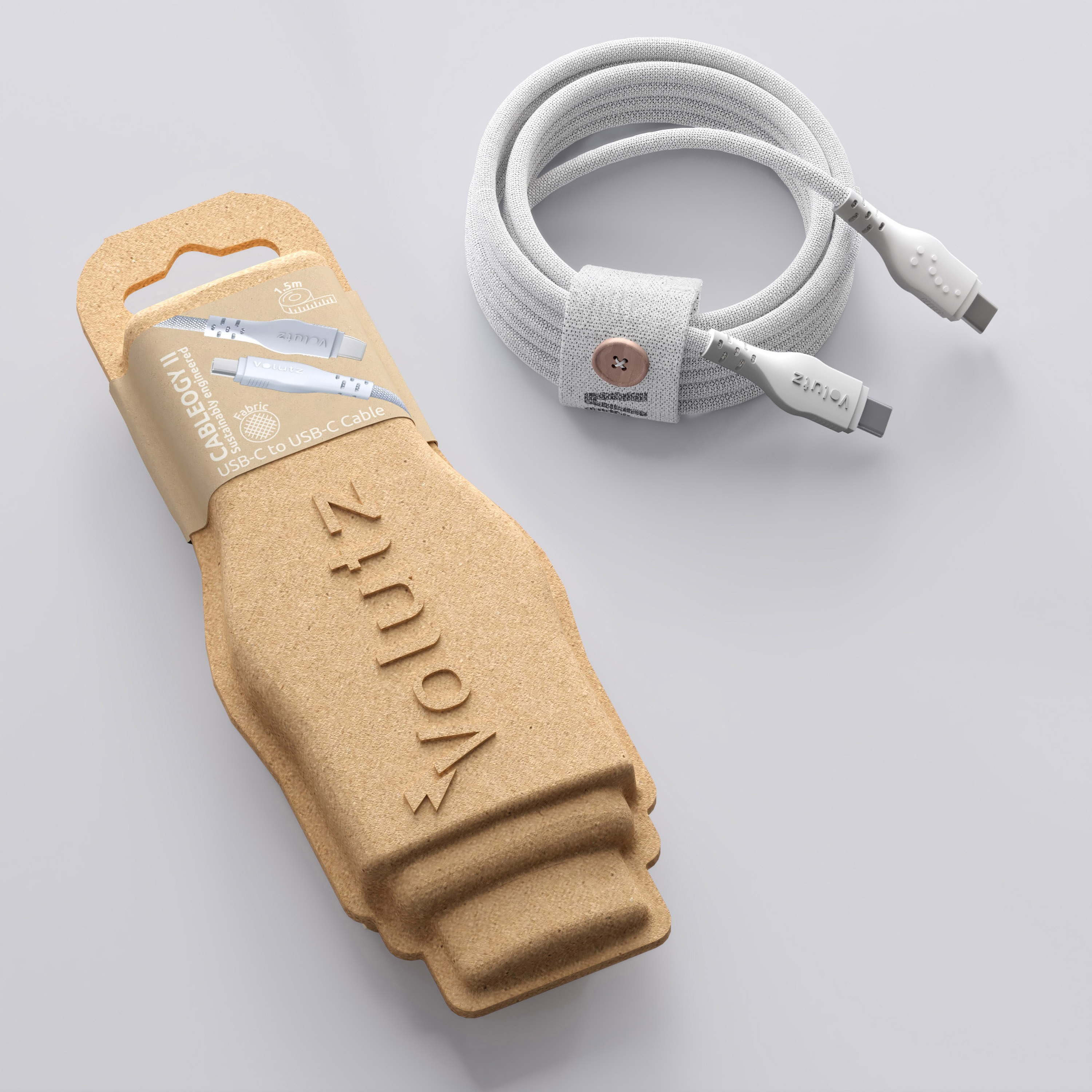Cableogy II -sarjassa on kaksi pituutta 1,5 m ja 3 m, ja siinä on tyylikäs kaapelijärjestelmä kankaasta, jossa on puinen nappi, tämä auttaa sinua säätämään täydellisen kaapelin pituuden tai helpottamaan säilytystä.