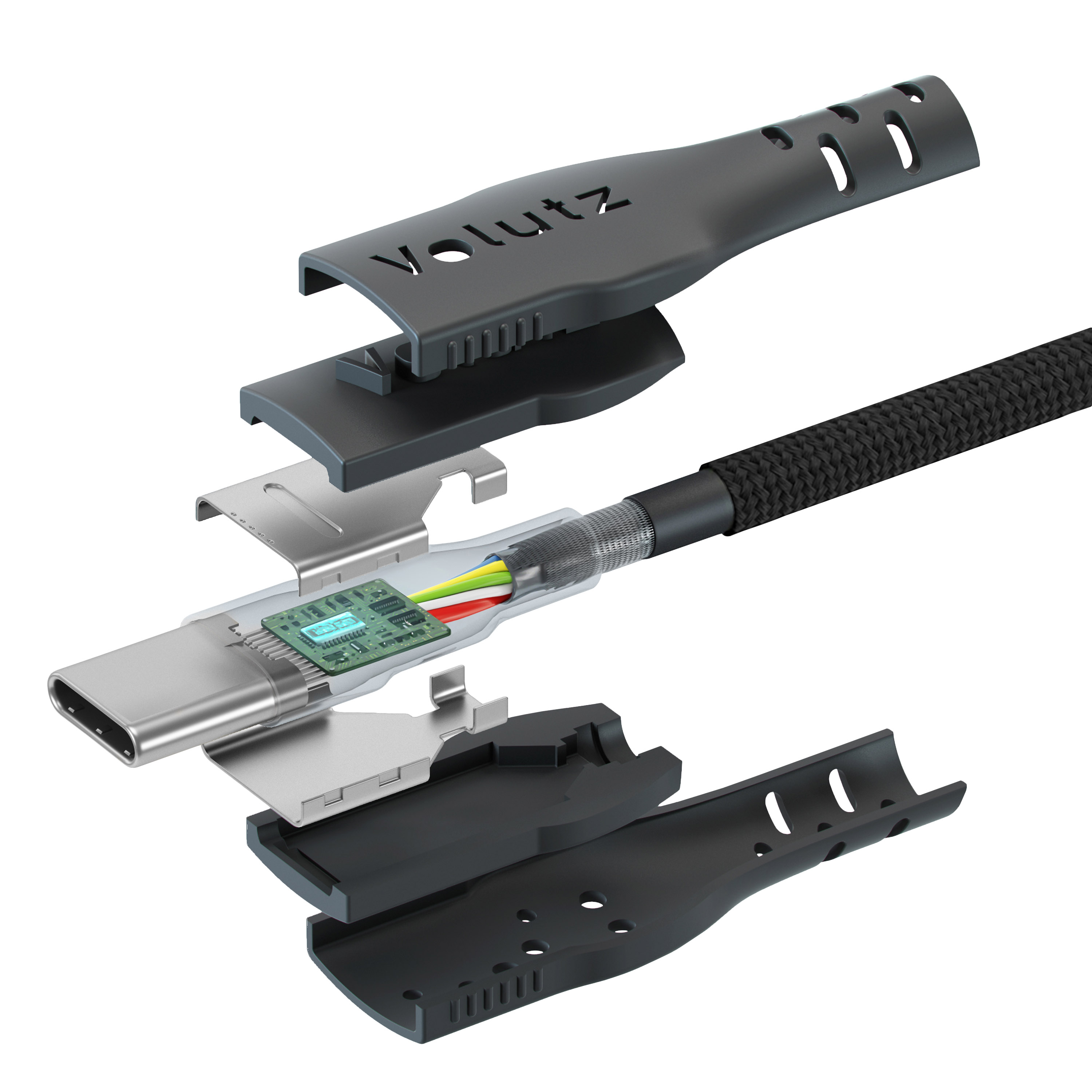 Nopeaan lataukseen tarvitset USB-C kaapelin paksulla kuparisella sisäjohtimella (matala vastus), ja tässä Volutz voittaa joka kerta! Tyylikkäimpään, kestävimpään ja nopeimpaan latausta ikinä.