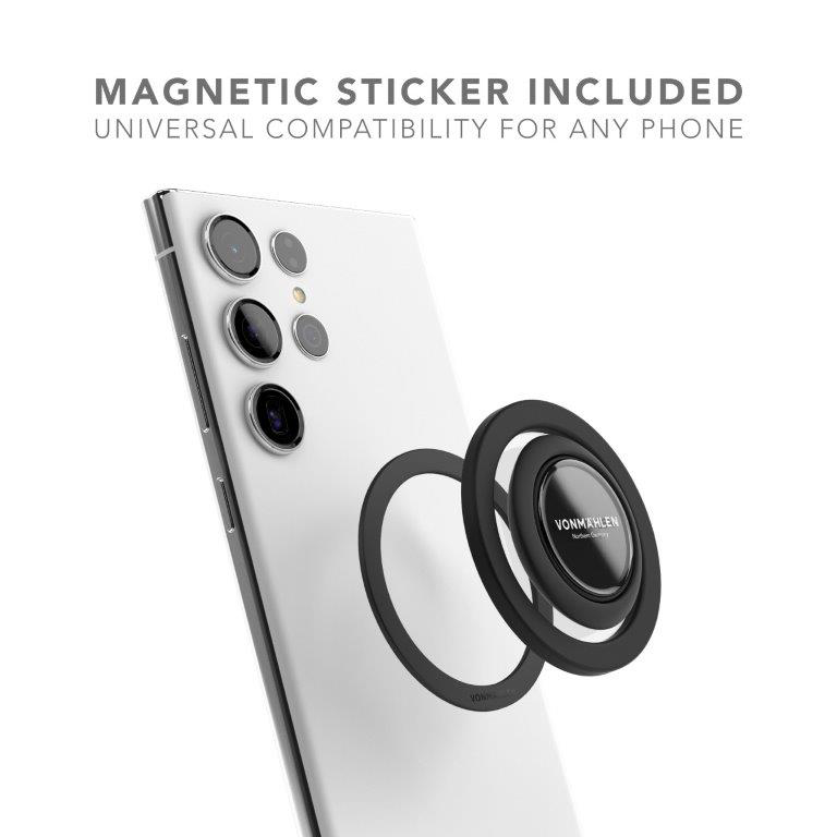 Myyntipakkauksen mukana toimitetaan erillinen magneettinen tarra, jonka ansiosta puhelinpidike on yhteensopiva kaikkien puhelinmallien kanssa.