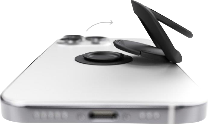 Backflip Pure on erittäin ohut, vain 6 mm paksu, puhelinpidike, jonka avulla puhelin pysyy aina turvallisesti kädessäsi. Erityisen suunnittelun ansiosta se sopii sekä vasen- että oikeakätiselle. Integroidun seisontatuen avulla voit katsella videoita tai elokuvia mukavasti.