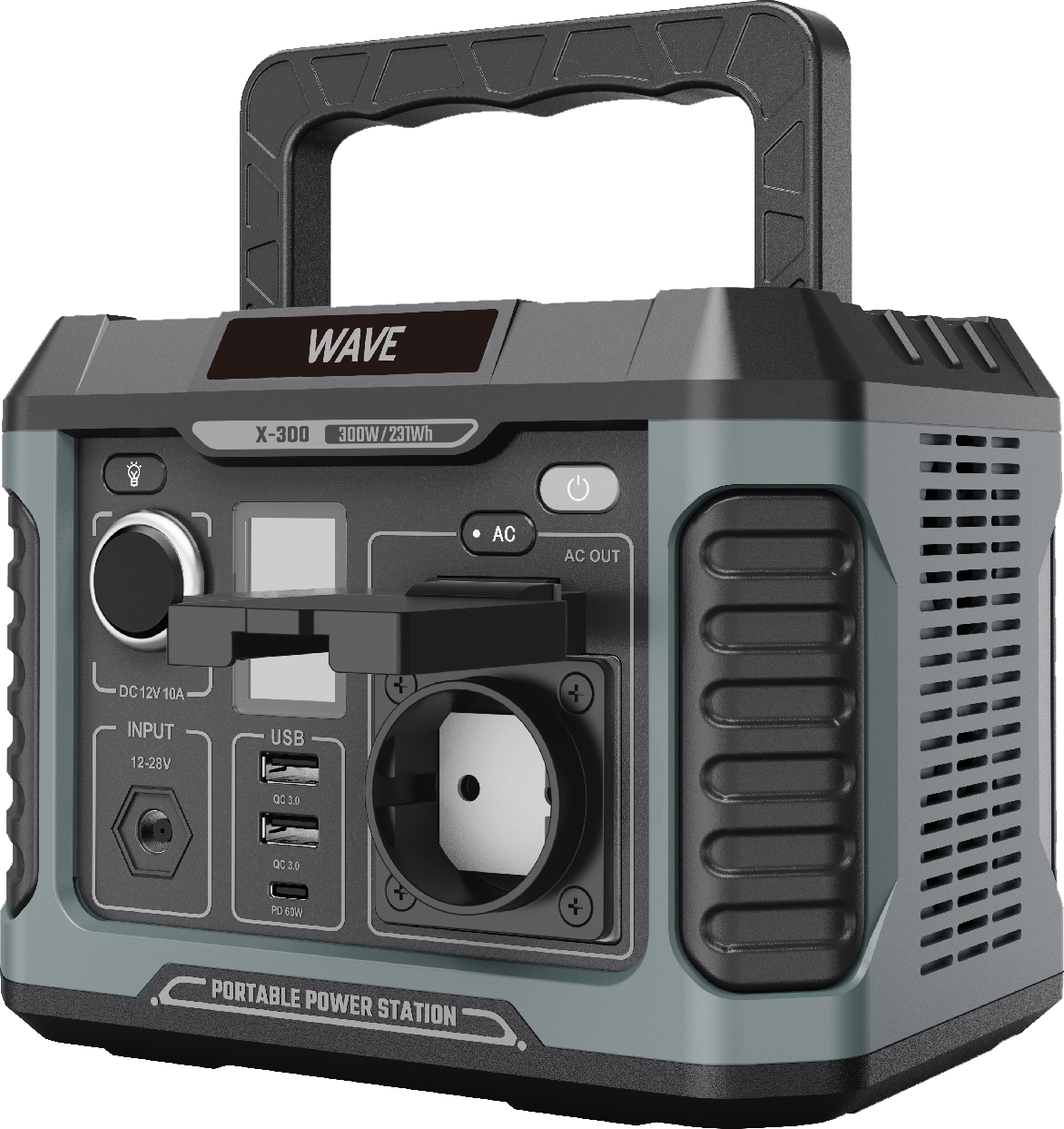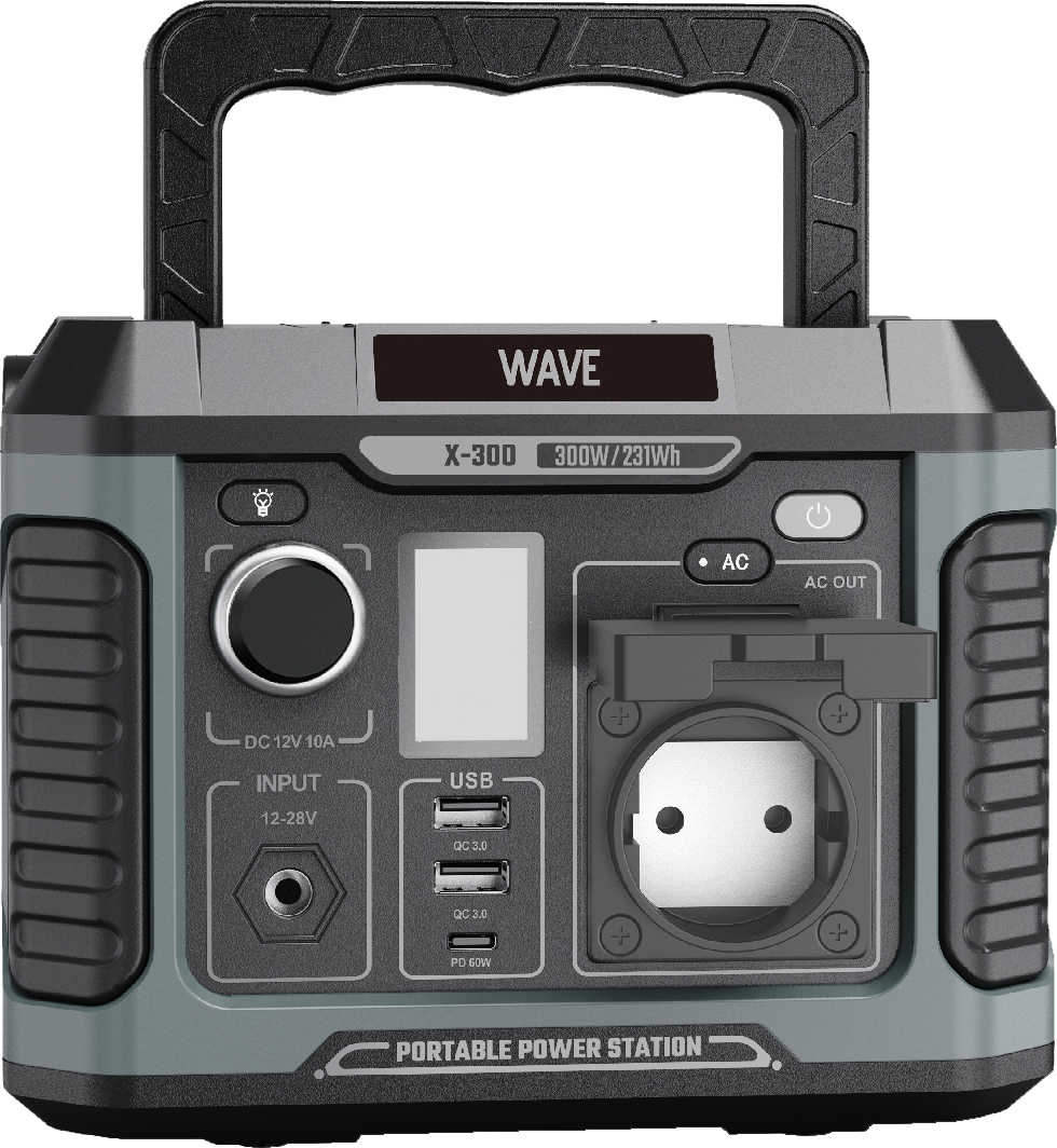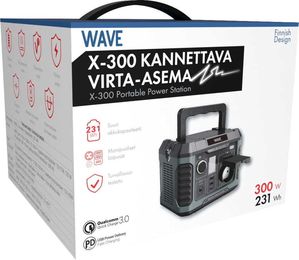 Output AC: 230 V / 50 Hz (puhdas siniaalto: jatkuva 300 W max., hetkellinen 600 W max.)