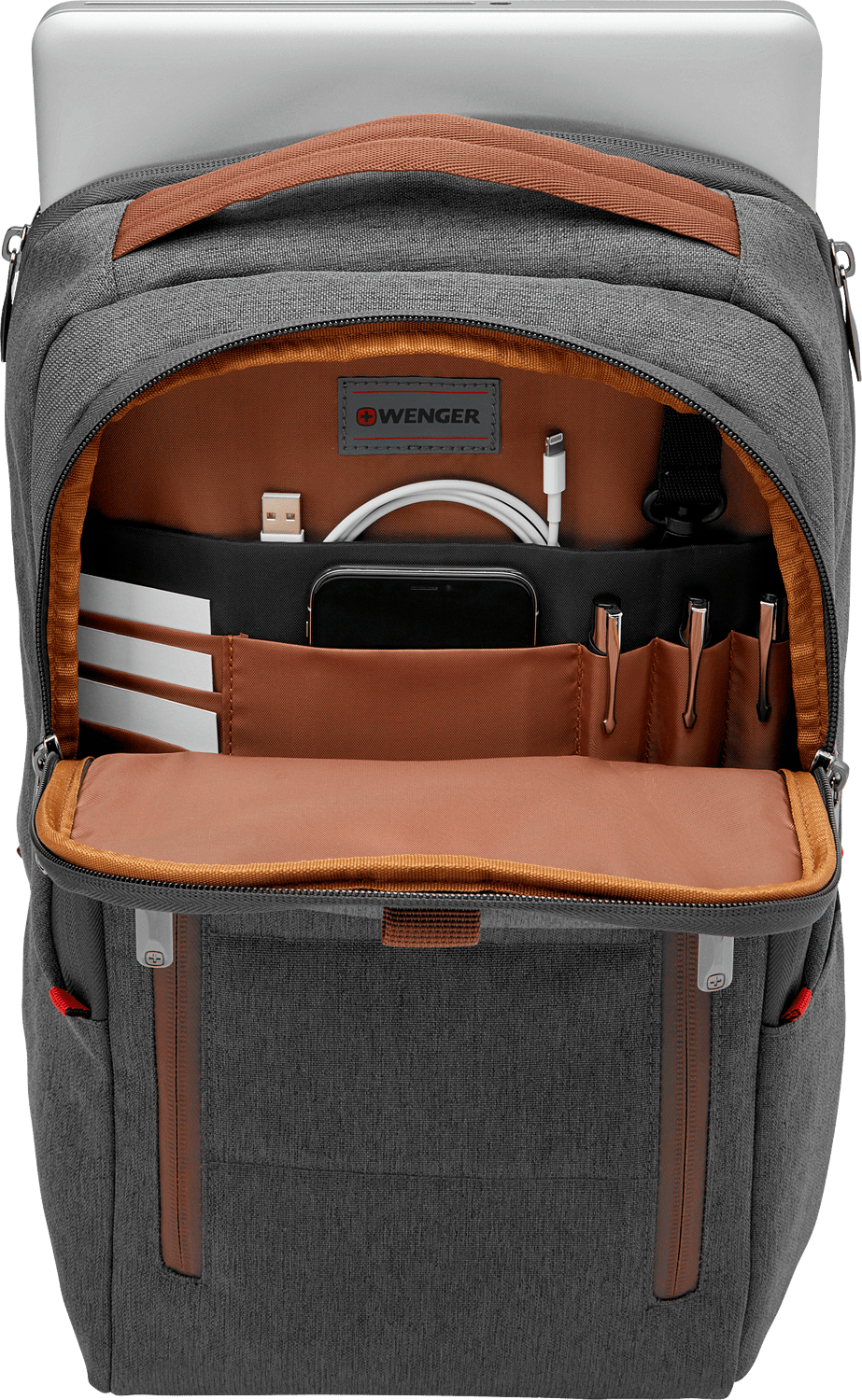 Pehmustettu 16 tuuman kannettavan lokero ja erillinen pehmustettu 12 tuuman tablettitasku suojaavat arvokkaita laitteita kolhuilta ja naarmuilta. Vedenkestävillä vetoketjuilla varustetut etutaskut tarjoavat nopean pääsyn tavaroihin, joita tarvitset useimmin. Tarvikkeiden järjestelijä auttaa pitämään johdot, laturit ja pienet esineet siisteinä ja helposti löydettävissä.