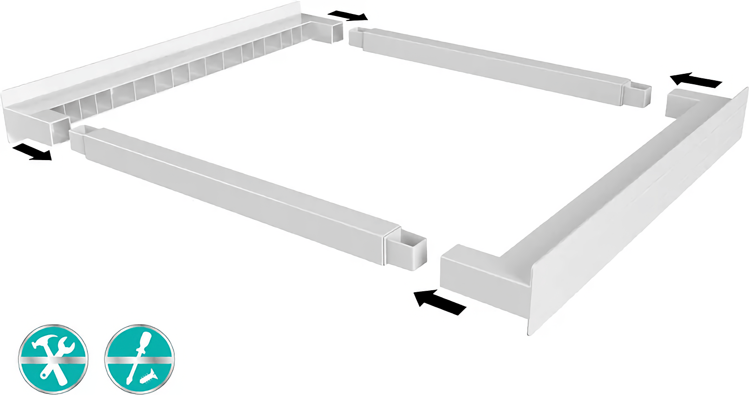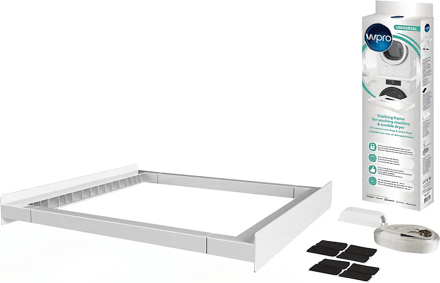 Wpro-universaali väliasennussarja pesukoneelle ja kuivausrummulle on täydellinen ratkaisu tilan säästämiseen. Korkean laadun ja vakaan rakenteen ansiosta kuivausrumpu voidaan pinota pesukoneen päälle. Vakautta vahvistetaan entisestään vyöllä, joka on sijoitettu kahden laitteen ympärille. Siinä on turvallisuutta lisäävä ja patentoitu Safe-in-lock -järjestelmä. Tämä käytännöllinen lisävaruste sopii kaikille vakiomittaisille (syvyys 45-60 cm) pesukoneille ja rummuille. Se on helppo koota etkä tarvitse työkaluja.