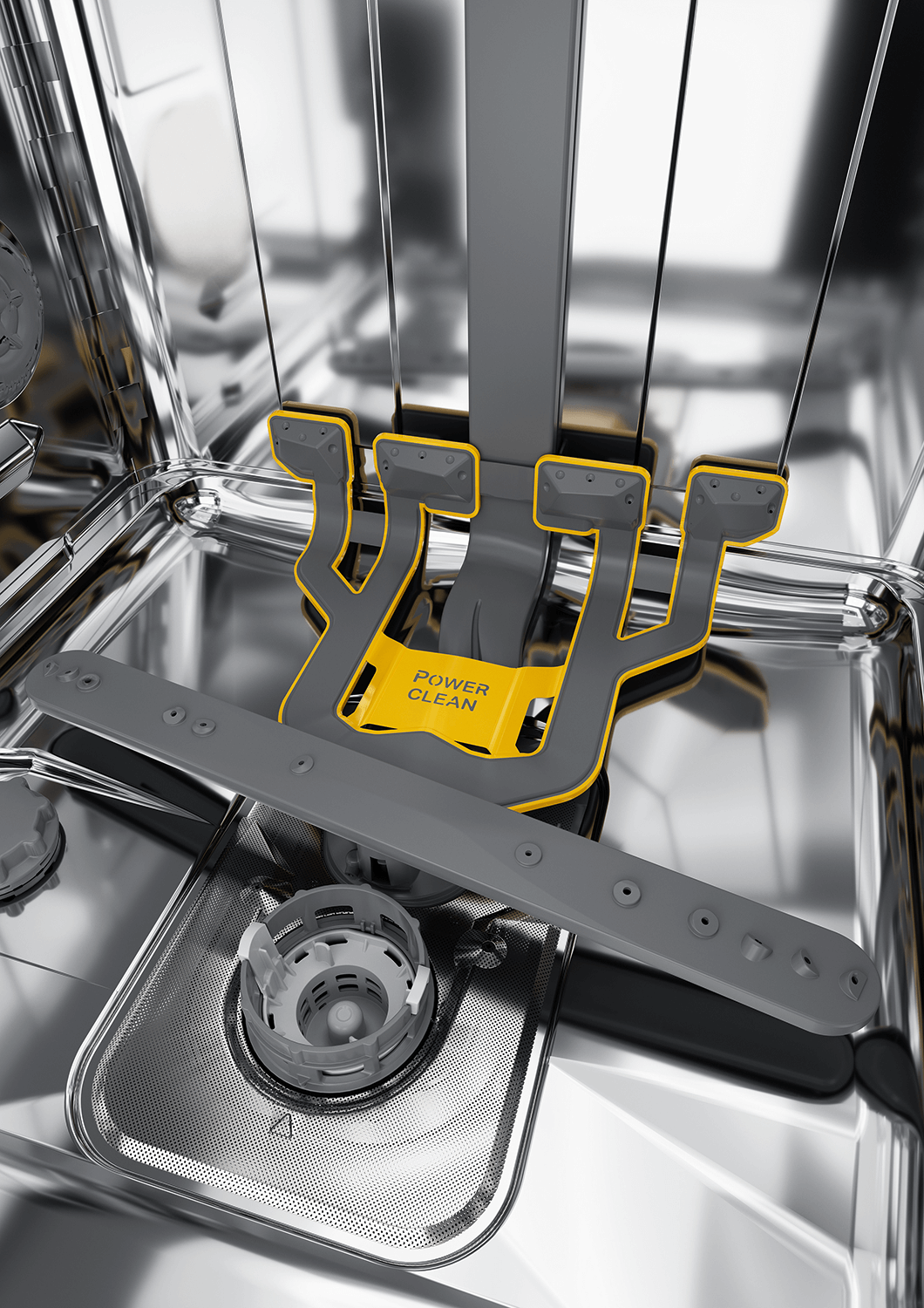 Tiskikoneen takaosan voimakas suihku puhdistaa tehokkaasti pinttyneimmänkin tahrat. Whirlpoolin ainutlaatuinen PowerClean Pro pesee kaikki pannut ja kattilat ilman esipesua tai liottamistakin. Tiskikoneessa on erityiset sensorit, jotka mittaavat astioiden likaisuutta ja täten määrittelevät pesun tehoa parhaan mahdollisen lopputuloksen varmistamiseksi. Kaiken kukkuraksi, voit nyt sijoittaa suuret vuoat pystyyn tiskikoneen takaosaan, sillä PoweClean puhdistaa ne tässäkin asennossa. Saatkin siis paljon lisätilaa koneesi alaosaan!