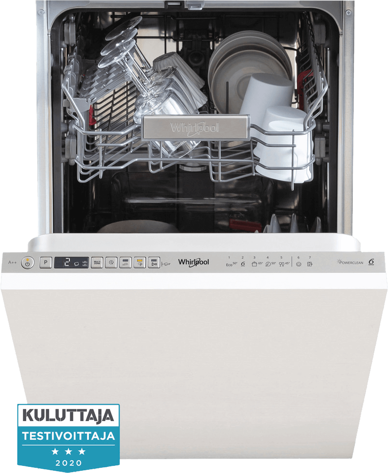 Tähän 45 cm kapeaan integroituun Whirlpool-astianpesukoneeseen mahtuu kompaktista koosta huolimatta 10 hengen astiasto. Tilanhallinta on fiksusti muunneltavissa erilaisiin tarpeisiin. Automaattinen pesuohjelma helpottaa päivittäistä käyttöä ja käynnistys on myös ajastettavissa.