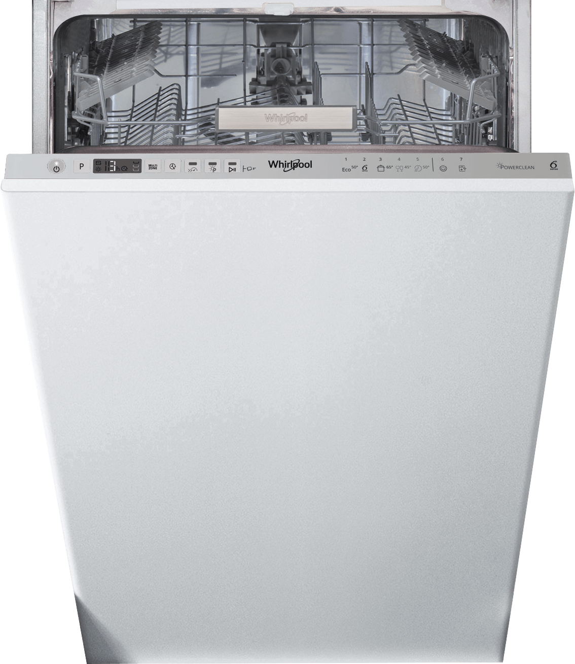 Täysin integroitava Whirlpool WSIO 3T223 PE X 45 cm Premium-luokan astianpesukone.